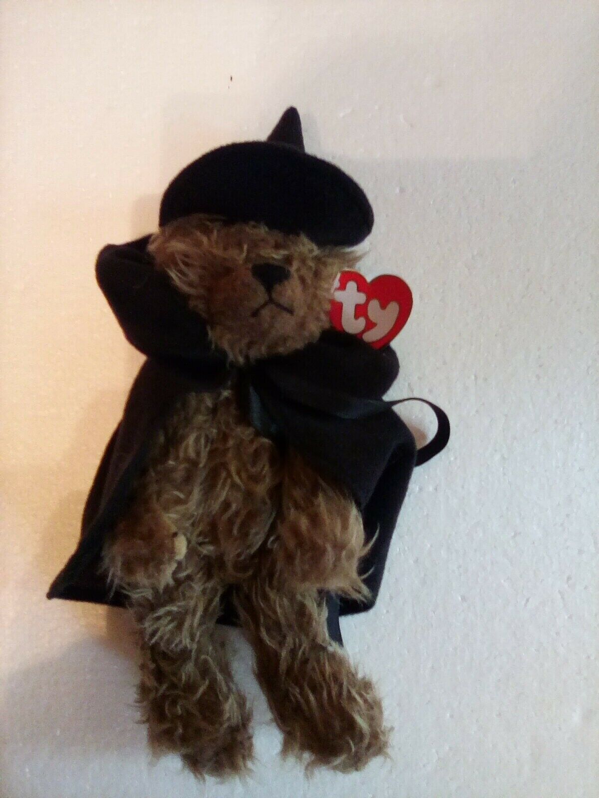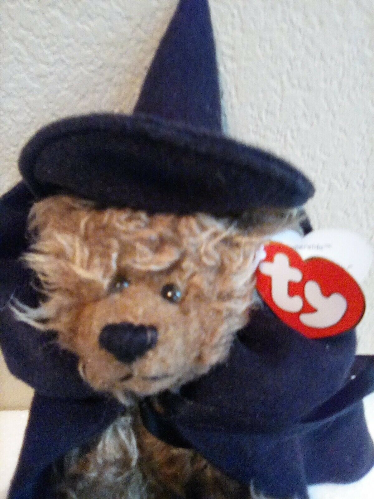 Esmerelda come's dress in her black cape and witches hat. Her hat does not come off, it's glued to head, but she is a cute little witch. Has been stored since the day I bought her. If any questions please feel free to contact me.