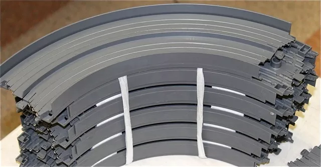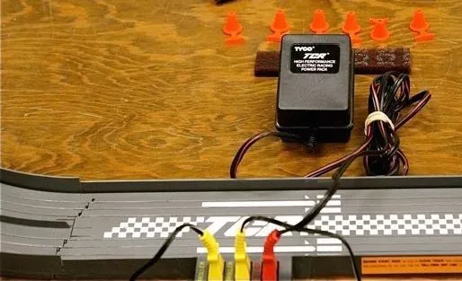 This listing is ONE (1) TYCO TCR, Total Control Racing, vintage 1993 Slotless HO scale slot car RACE SET. The components are all New Old Factory Stock that was originally intended to be used to assemble race sets. All track needs some scotch-brite pad brightening of the rails. WD-40 on a rag will help rejuvenate the track appearance & will help to repel moisture. The TYCO TCR system will accept vehicles like Aurora Speedsteer or Ideal TCR as well. On my web site, under guides, i have several in depth essays on TCR racing. The AC powered system works well & has a degree of difficulty that is unexpected. Although the entire track system has integrated guardrails, flying off the track is still probable at higher speeds. Shifting lanes is actuated with a steering wheel on the controller. Applying the wheel while going too slow results in a vehicle stall; do it too late, & the corner wall divider, takes you out. Adding a JAM car creates a situation where one has to get around the moving obstacle! Using a second JAM vehicle (available separate) allows one car to go in each direction to warm up the track. JAM vehicles are very inexpensive. Typical is a Mustang 5.0 or an Emergency Van. A WARM TRACK MAKES FOR A WELL PERFORMING TRACK. TCR RACING IS A HOBBY & NOT A TOY. Adult supervision, setup & participation are CRUCIAL to a good user experience. Everything is included to get started. Parts, Vehicles & Track Accessories are widely available. INCLUDED IN THIS LISTING ARE: (1) 15" Terminal Straight Track, (5) 15" Straight Tracks, (8) 9" Straight Tracks, (12) 1/4 9" Curves, (2) Speed Controllers, (1) AC Transformer, (6) Obstacle Pylons & a Scotch-Brite cleaning pad. The SIX (6) Vehicles Included are: a Yellow Ford Mustang 5.0 JAM car, a yellow Pennzoil #30, Tide #5, Red Ferrari Street, Red Ferrari #3, and Black and Green TYCO TCR #34. Also included is a free extra parts chassis, less only the tires! SHIPPED IN A USPS PRIORITY MAILING BOX. NO RETAIL BOX IS INCLUDED. Not fancy, but very cool to be this fresh after 25 years! Assembled from bulk packaged, new old, unused factory stock. All track requires initial buffing of the rails for best performance. PLEASE NOTE: NOT ALL CARS ARE THE SAME SPEED. Cars vary in original speed, speed over time & time before a reconditioning is needed. Some maintenance on chassis can increase performance. Some users find running the chassis on a 9V battery for 1/2 an hour initially, breaks in the chassis, allows the carbon brushes to seat against that armature & generally prolong the livelihood of the chassis. SOME CHASSIS NEVER PERFORM GREAT & ARE DESTINED TO BECOME PARTS DONORS. Always good to have extra chassis & parts around as both are very inexpensive. Sold as is. Descriptions are very accurate; No Returns. PLEASE ASK QUESTIONS BEFORE YOU BUY IF YOU ARE UNSURE. We ship promptly & professionally. We happily combine orders & refund any excess s/h immediately upon shipping. We can always provide tracking. I charge $1 for expert handling/packaging, & actual shipping. We ship out of the country almost daily. Please refer to our feedback, social media or time selling HO slot cars for assurances of a good honest deal. Happy motorin' & thanks S'lots from Bob at Slot Car Central in SYR. We Know H.O.