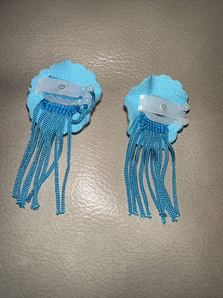 Add some western flair to your Barbie doll's wardrobe with this 1993 Western Stampin Barbie Cowboy Cowgirl Boots Hair Clips set. The set includes a blue coat/jacket, belt, hat, and shoes, all made of cloth material. These everyday and seasonal clothing pieces are perfect for all occasions and are compatible with 11-inch Barbie dolls. The set is an original, licensed reproduction from Disney's Barbie franchise, manufactured in 2001. The vintage-inspired clothing style and music theme make it a must-have for any Barbie collector. This single unit set weighs 1.34 ounces and is categorized under Dolls & Bears, Dolls, Clothing & Accessories, and Doll Clothes & Accessories.