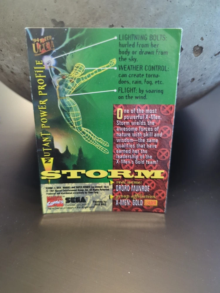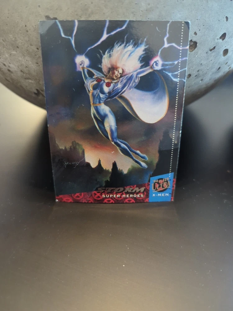 Movie: X-Men Year Manufactured: 1994 Language: English Genre: Action, Adventure, Comics, Superhero Vintage: Yes Original/Licensed Reprint: Original Card Size: Standard Character: Beast, Bishop, Cable, Cyclops, Gambit, Jean Grey, Rogue, Storm, Wolverine Autographed: No Type: Non-Sport Trading Card TV Show: X-Men Franchise: Marvel (MCU) Country/Region of Manufacture: United States Manufacturer: Fleer Material: Card Stock Set: X-Men '94 Ultra Features: Base Set, Chase, Checklist, Insert, Super Heroes, Super-Villains