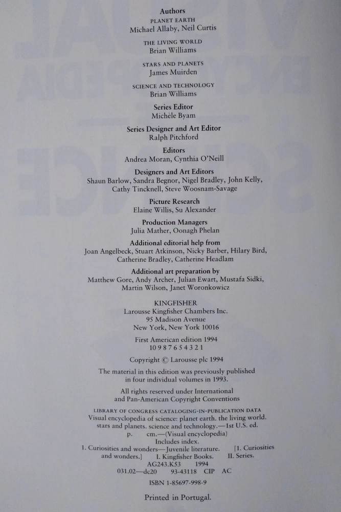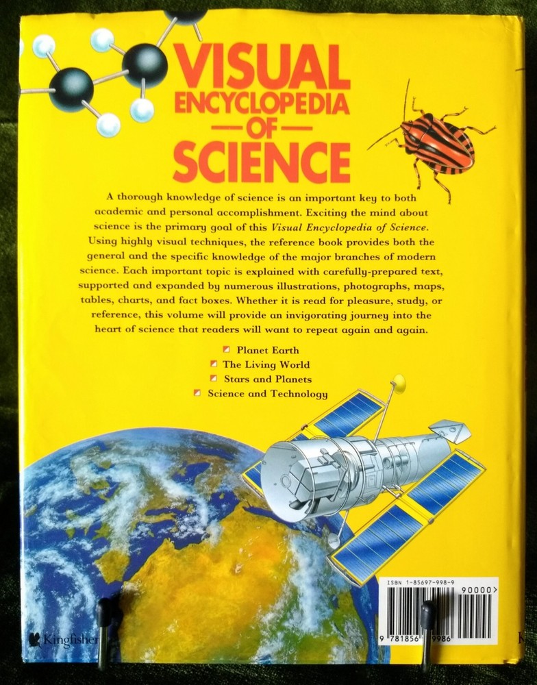 Visual Encyclopedia of Science (1994) An enchanting encyclopedia of science topics ranging from · Planet Earth · The Living World · Stars & Planets · Science & Technology It’s highly detailed illustrations and extraordinarily informative text are will capture the attention of adolescents and adults alike. Thousands of science facts--covering everything from the smallest of fossils to the most distant of stars--are accessible at a glance in this colorful, highly visual reference. Charts, diagrams, and pictures combine with short, authoritative text boxes to keep the attention of readers as they look and learn. Revised edition. Material in this edition was previously published in four individual volumes in 1993. Book is in Very-Good condition. Item is from smoke-free, pet-free environment.