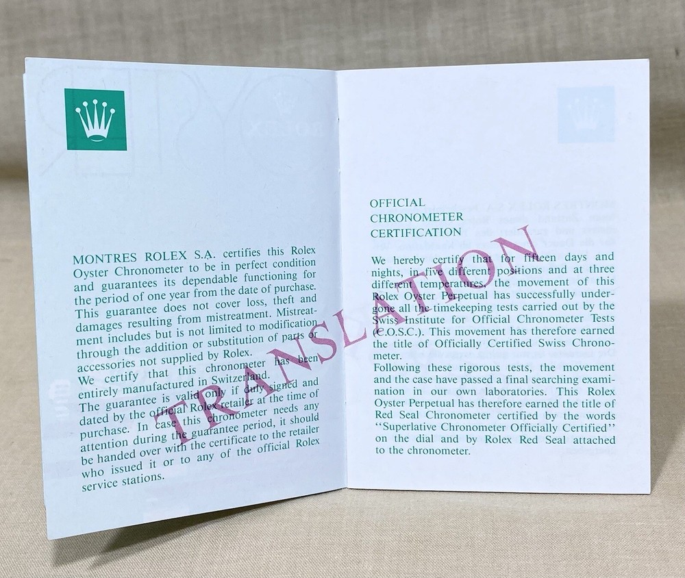 Rolex Genuine Booklet ''Translation'' Languages: English, German, Italian, Portuguese, Spanish, Danish, Dutch, Russian, Japanese*, Chinese*, Arabic* (Languages with *: I am not sure if these are the correct languages, I can send pictures if requested) Year: 1995 Ref: 565.00.300.8.95 Please Note: Item is slightly marked (see photos) Private Collection ORIGINAL ---------------------------------------------- These products are being sold for Collection purposes ONLY. I am Member of WTA since 1998 I am not affiliated with Rolex . I am not an official Rolex Dealer Questions : Please ask us all the questions you have before bidding. ------------------------------------------------- We sell products that might have been used or otherwise known as "take-offs". Some parts are like new or very gently used, and others show signs of wear and may need to be cleaned or polished. Please see pictures for more details. We try to take pictures of any defects the item may have. If you have any additional questions, feel free to ask us and we will get back to you as soon as possible. Customer Service If for any reason you have an issue with our product, please choose “Contact Seller” via eBay before leaving negative feedback or opening a case. We promise to resolve any issues as soon as possible. Positive feedback and 5-star seller ratings are extremely important to us as we are looking to provide outstanding products and services to our customers. Returns We reserve the right to charge a 10% restocking fee on all returns. Shipping and handling charges are not refundable. The buyer is responsible for the return shipping fee. Shipping We typically ship orders Monday through Friday (except for Holidays) within 3 business days of receipt of cleared payment. Please make sure your shipping address is correct before sending payment. All orders are shipped with a tracking number. You will receive and email with it as soon as your order ships. Please allow a few extra days for delivery if there is a weather problem. IMPORTANT NOTE FOR INTERNATIONAL BUYERS All our goods are shipped from Spain, but we are a UK based eBay shop, sales to the European community might be subject to VAT. Please see the link below: VAT on eBay purchases for EU buyers | eBay.com BUYERS OUTSIDE THE EUROPEAN UNION: The tariffs, duties and import taxes are not included in item price or shipping charges. These charges are the responsibility of the buyer. Refer to the customs authorities of your country to inquire about these costs before bidding on an item or buying it. These fees are usually charged by the carrier or when the buyer takes the item and should not be confused with additional shipping costs.