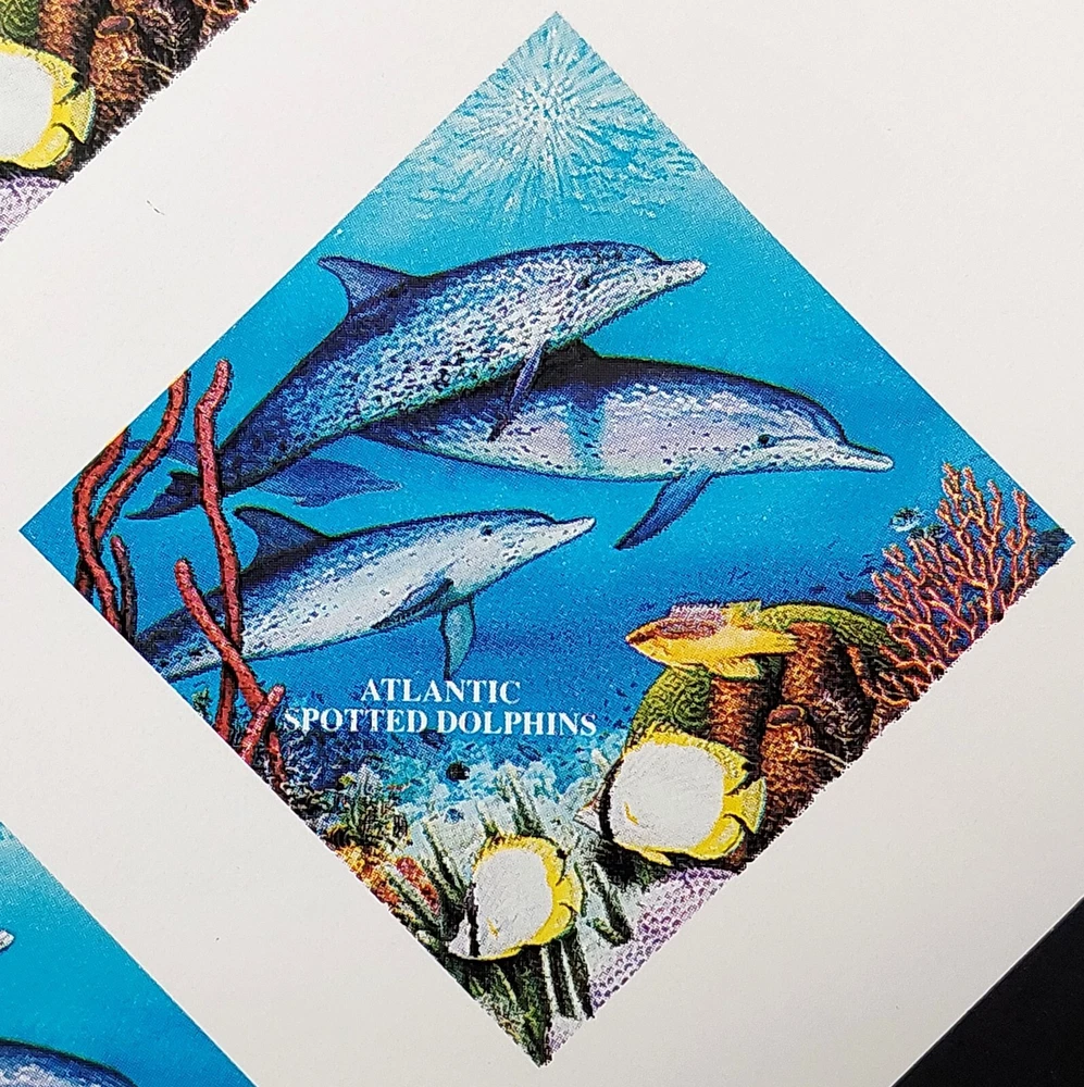 Up for bid is a sample sheet of 4, 1995 USA $10 Diamond Reef, Marine Conservation and Safety stamps that is missing the black printing. We are not certain if this is a sample handout sheet or some kind of test sheet. The sheet has no gum on the back and no perforations. The item pictured is the exact item you are bidding on. Please examine the pictures to be sure this item is right for you. The item will be shipped in a rigid fashion for secure shipping. Be sure to visit our store where you will find many other interesting items! Check out our feedback and bid with confidence! Thanks for looking!