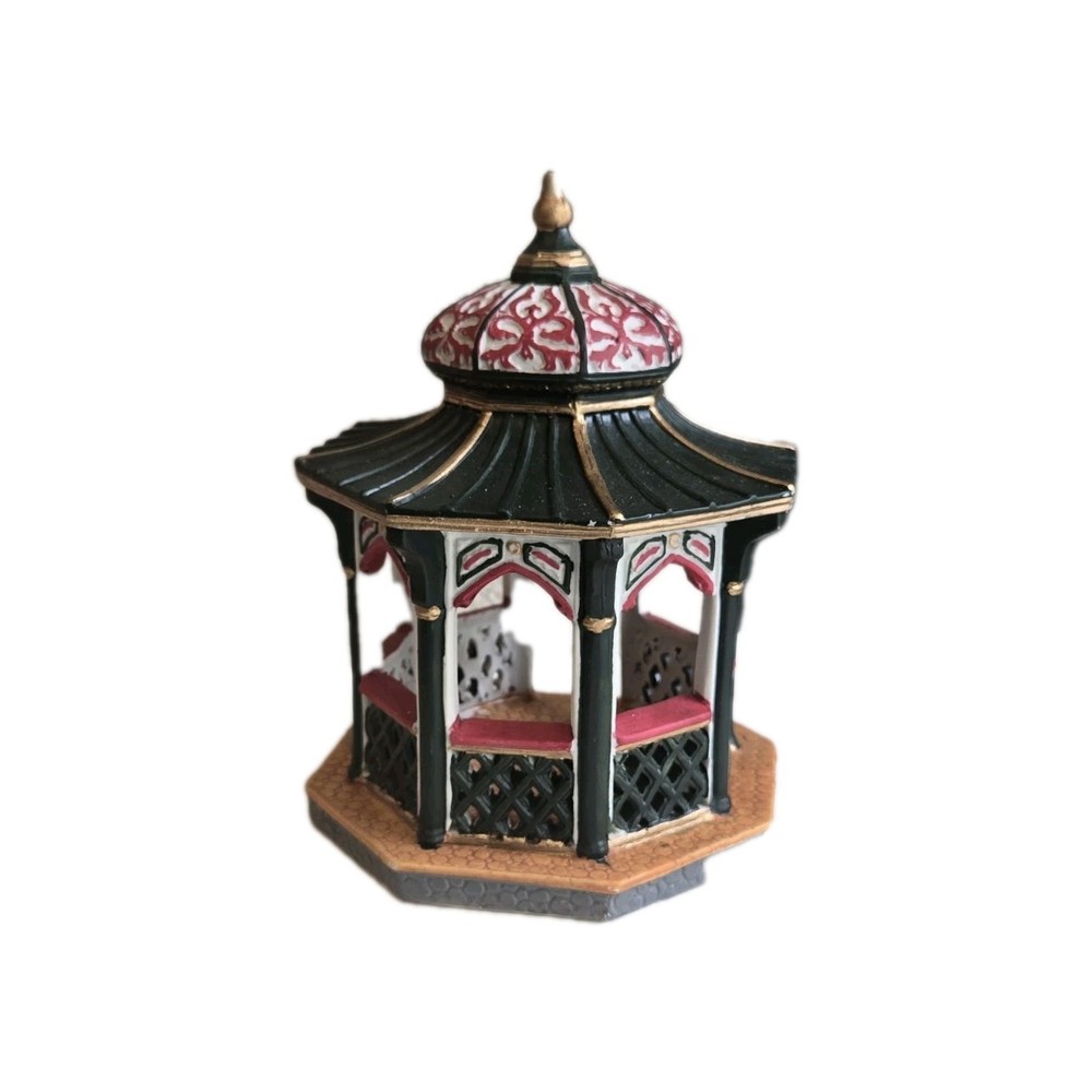 Vintage 1996 LEMAX Ceramic Gazebo Christmas Village Decor Condition: Great (See Photos For More On Condition) 6" Tall X 4 1/2" Wide The Vintage 1996 LEMAX Ceramic Gazebo is a traditional Christmas village decor piece from the Snow Village collection. Made of ceramic and porcelain, this medium-sized gazebo is painted in a green color and features a classic design perfect for holiday celebrations. Manufactured in China by the renowned brand Lemax, this original piece adds charm to any Christmas village display with its detailed craftsmanship and timeless style. Ideal for collectors or those looking to enhance their seasonal decor, this gazebo captures the essence of festive villages from 1996. (Bin )