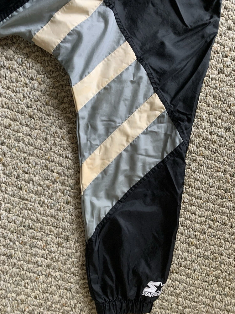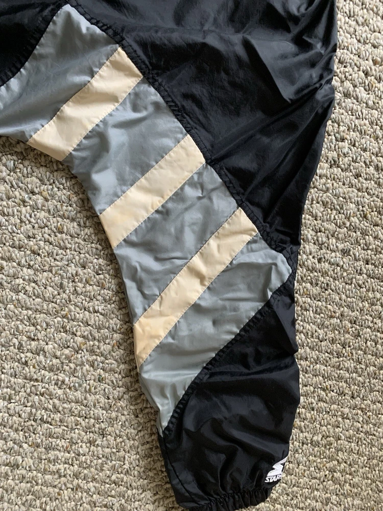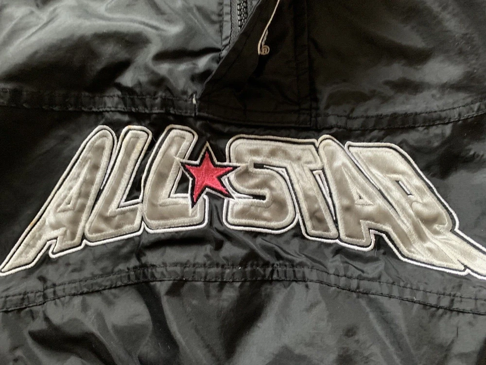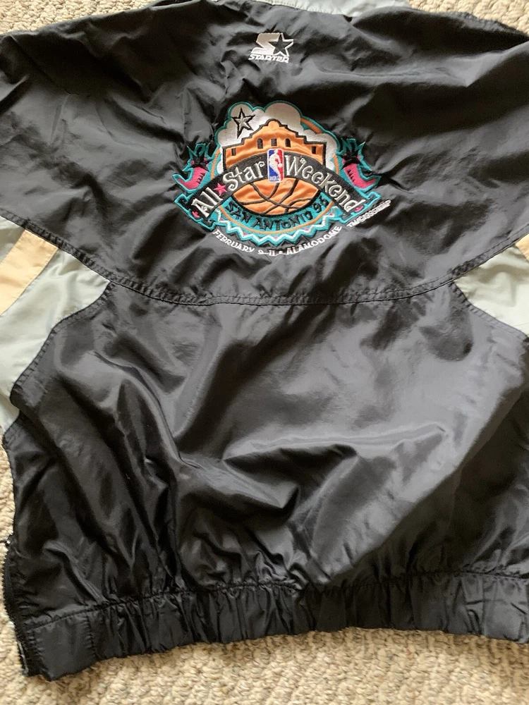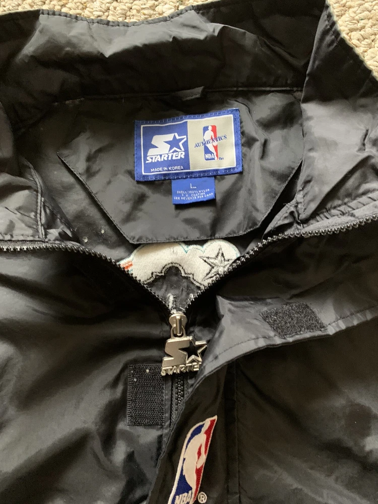 Get ready for the 1996 NBA All Star game with this windbreaker jacket from Starter. The jacket features the logo of the San Antonio Spurs, the team that played in the All-Star Game that year. It is made of high-quality materials to keep you warm and comfortable during the game. The jacket is available in size L and is perfect for any basketball fan who wants to show off their love for the sport.