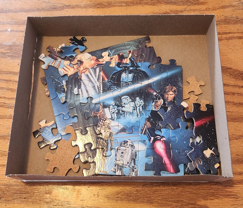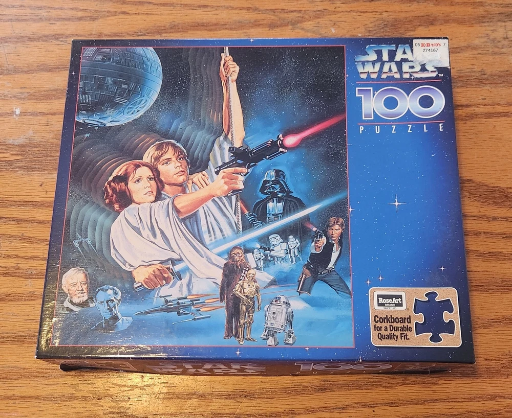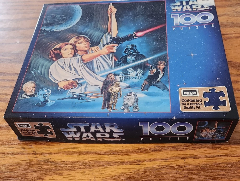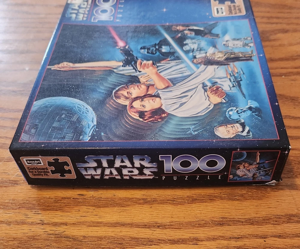 Up for auction is a rare vintage Star Wars puzzle, featuring the iconic characters of Luke Skywalker and Princess Leia. This 100-piece puzzle was produced by RoseArt in 1996 and is a must-have for any Star Wars collector. Puzzle is used and I did not verify all the pieces were in the box. Box was in storage for years, please look at pictures for condition.
