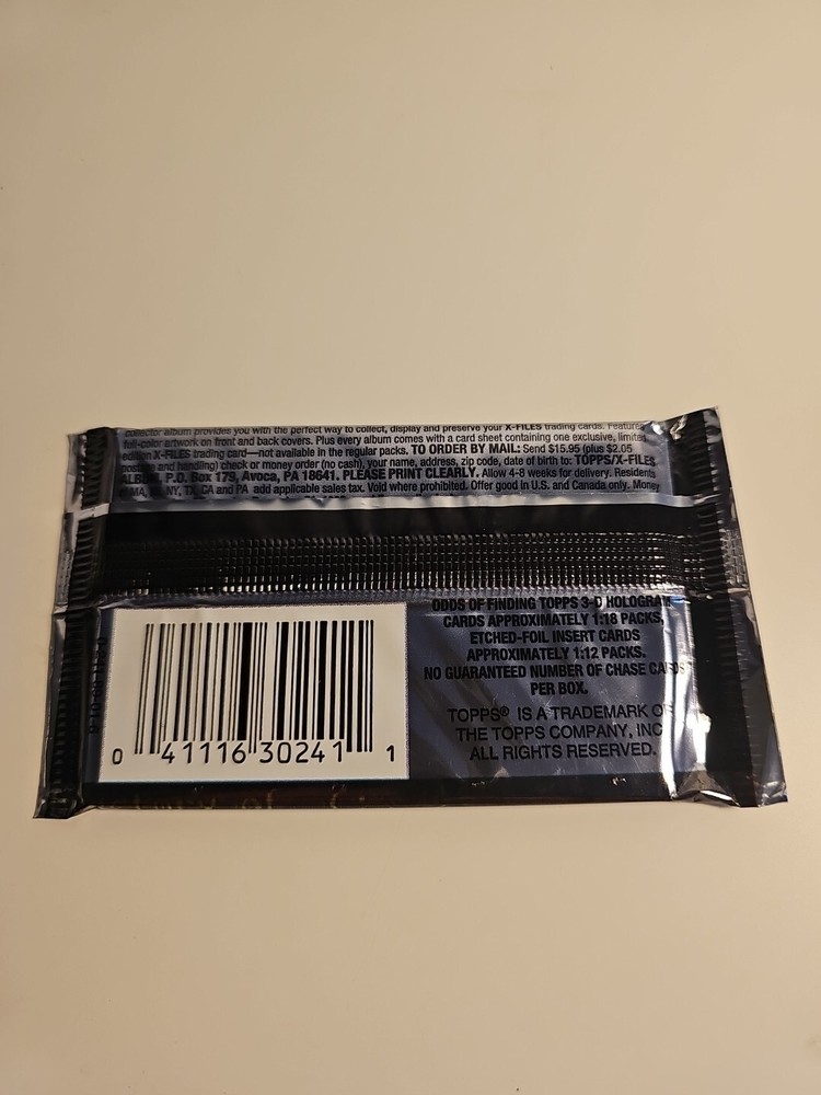 Get your hands on this sealed 1996 Topps The X Files Season 2 trading card pack featuring Skully and Mulder. This pack includes 15 cards made of sturdy card stock material with a hologram feature. The set is part of the non-sport trading card genre and is perfect for fans of the hit TV show The X-Files. The pack is configured as a single pack with a standard size and is suitable for collectors aged 13 and above. The cards are in English language and feature characters from the show. This pack is a great addition to any collection and is a must-have for fans of The X-Files.