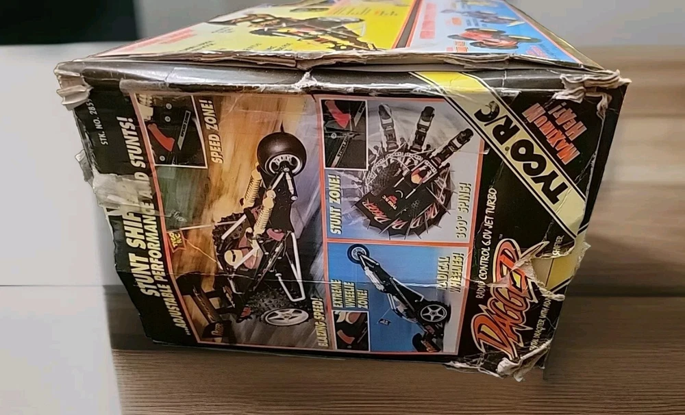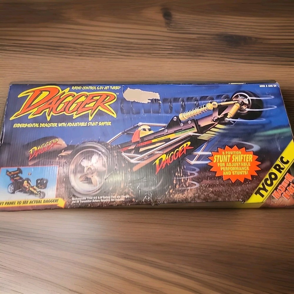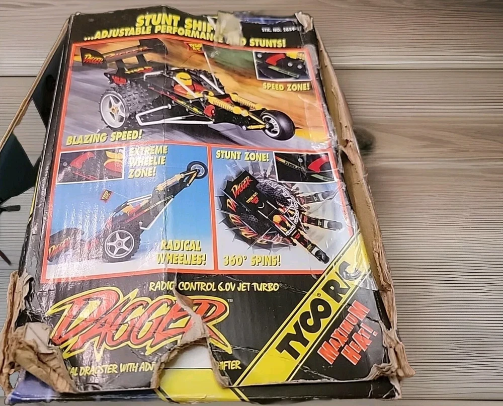 Preowned but in good condition. Box is damaged, but contents inside are in great shape. No battery or instructions include. See pictures for details. *UNTESTED* This vintage TYCO Dagger model car is a great addition to any RC collection. With its sleek black color and rare characteristics, it's sure to catch the eye of any collector or enthusiast. The car is made of durable plastic and features a brushed motor type, making it suitable for both off-road and on-road use. This 2WD drag car comes ready to go with all included parts and is recommended for ages 8 and up. The TYCO Dagger also has a product line of its own, called TYCO R/C Maximum Heat, which adds to its uniqueness and value. Take this lightly used gem for a spin and experience the thrill of vintage RC racing.