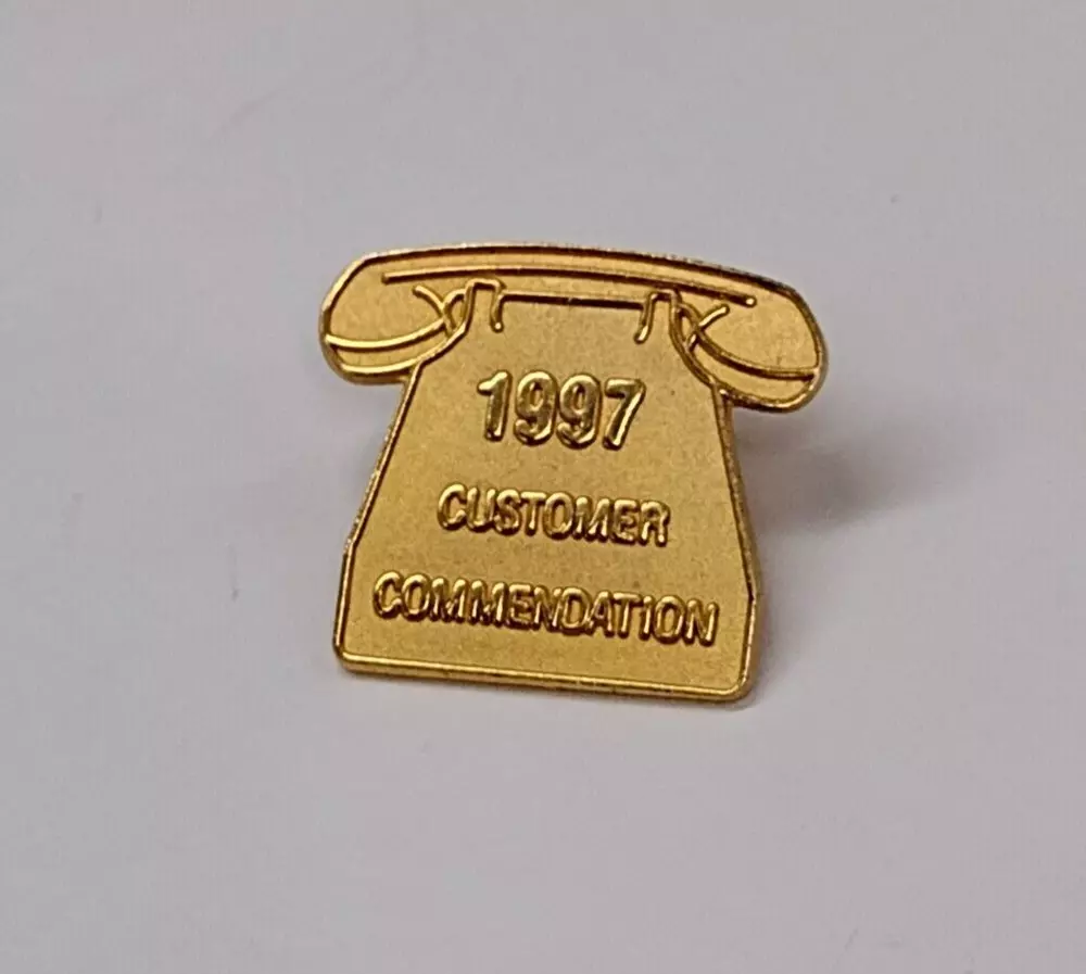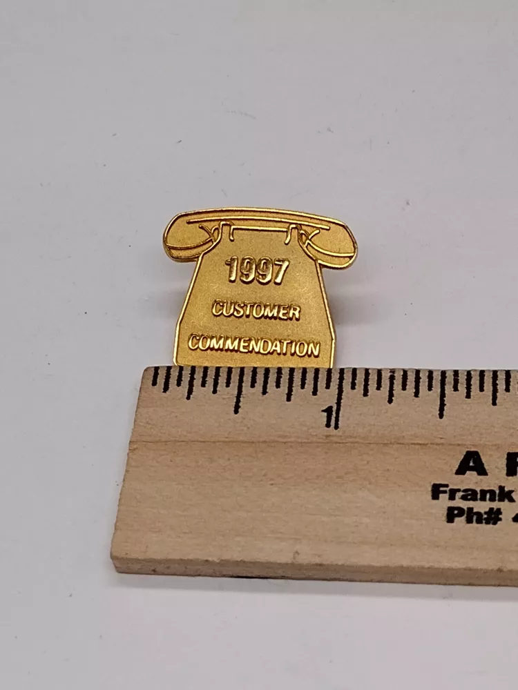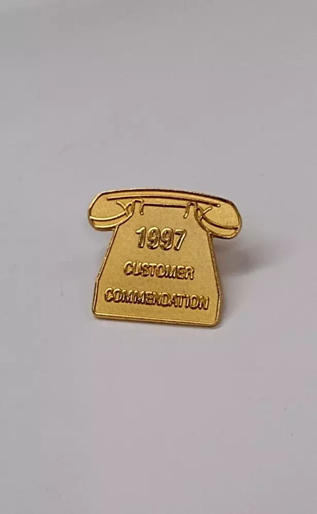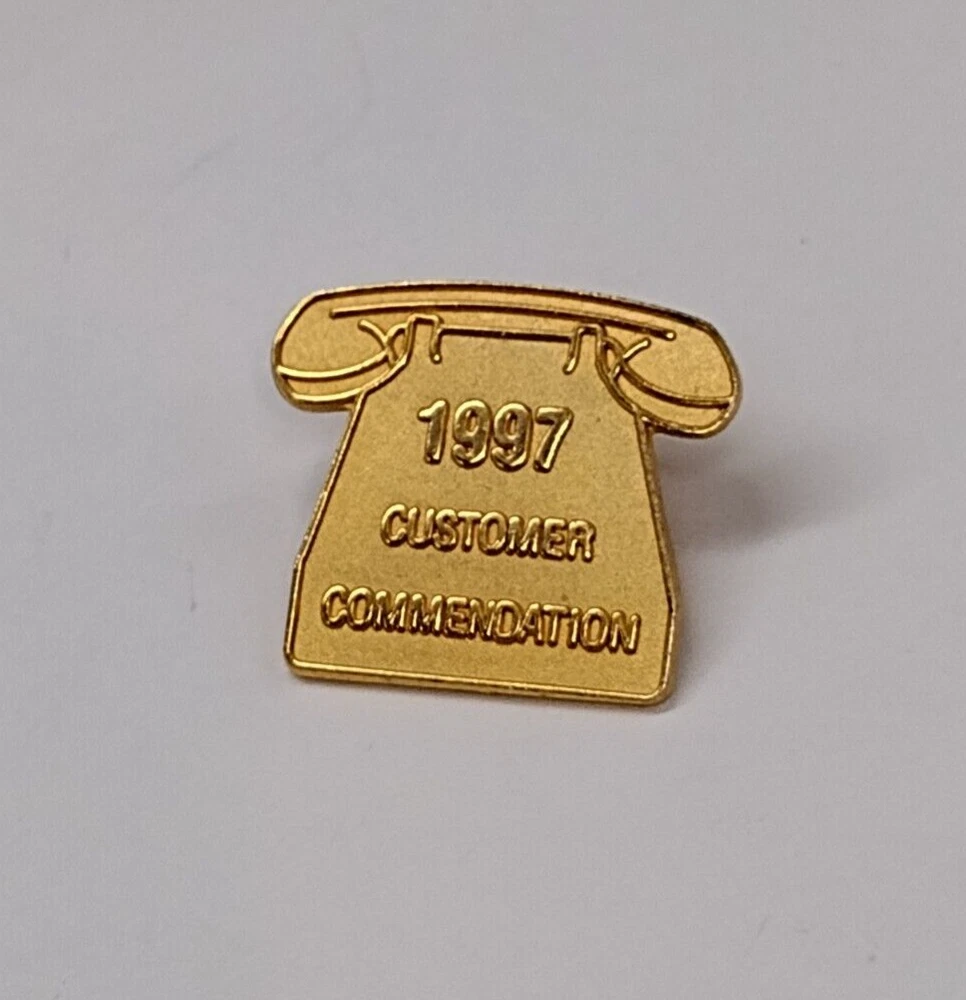 Free Shipping! Pre-owned 1997 Customer Comendation Novelty Gold Tone Phone Lapel Tack Pin Shows normal surface and paint wear. Please refer to the pictures for details. If you have any questions, just send a message. Thank you.