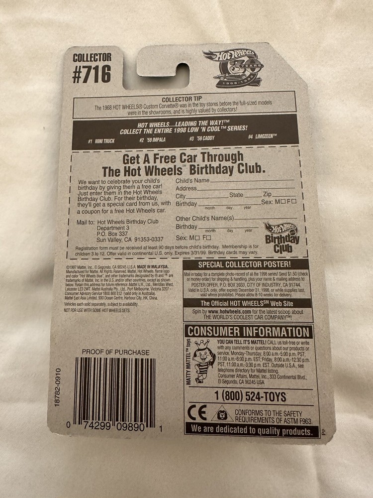 This 1997 Hot Wheels #716 Low 'N Cool Series #4 Limozeen is a must-have for any diecast car collector. The car is made of high-quality materials and has a beautiful multi-color design. It is a 1:64 scale model of a Cadillac limousine, complete with gold trim and a blue card number of B543. The car is recommended for children aged 3 and above and is perfect for both boys and girls. It is not customized and was manufactured in Malaysia. This Hot Wheels car is part of the Low 'N Cool series and is a great addition to any collection.