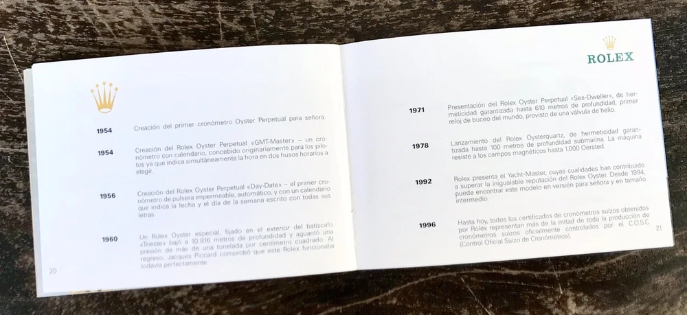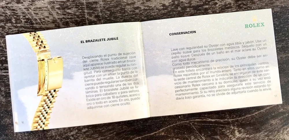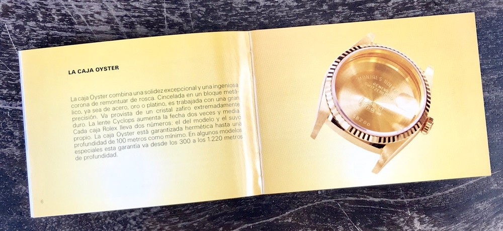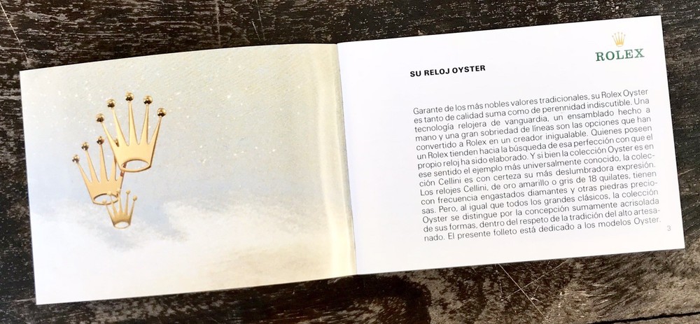 ROLEX Genuine Booklet ''Su Rolex Oyster'' Ref: 579.54 Sp - 20 - 5.1997 Year: 1997 Language: Spanish THIS IS NOT A WATCH Please Note: Item is slightly marked (see photos) Measure: 12,5 x 9 cm Private Collection ORIGINAL ---------------------------------------------- These products are being sold for Collection purposes ONLY. I am Member of WTA since 1998 I am not affiliated with Rolex . I am not an official Rolex Dealer Questions : Please ask us all the questions you have before bidding. ------------------------------------------------- We sell products that might have been used or otherwise known as "take-offs". Some parts are like new or very gently used, and others show signs of wear and may need to be cleaned or polished. Please see pictures for more details. We try to take pictures of any defects the item may have. If you have any additional questions, feel free to ask us and we will get back to you as soon as possible. Customer Service If for any reason you have an issue with our product, please choose “Contact Seller” via eBay before leaving negative feedback or opening a case. We promise to resolve any issues as soon as possible. Positive feedback and 5-star seller ratings are extremely important to us as we are looking to provide outstanding products and services to our customers. Returns We reserve the right to charge a 10% restocking fee on all returns. Shipping and handling charges are not refundable. The buyer is responsible for the return shipping fee. Shipping We typically ship orders Monday through Friday (except for Holidays) within 3 business days of receipt of cleared payment. Please make sure your shipping address is correct before sending payment. All orders are shipped with a tracking number. You will receive and email with it as soon as your order ships. Please allow a few extra days for delivery if there is a weather problem. IMPORTANT NOTE FOR INTERNATIONAL BUYERS All our goods are shipped from Spain, but we are a UK based eBay shop, sales to the European community might be subject to VAT. Please see the link below: VAT on eBay purchases for EU buyers | eBay.com BUYERS OUTSIDE THE EUROPEAN UNION: The tariffs, duties and import taxes are not included in item price or shipping charges. These charges are the responsibility of the buyer. Refer to the customs authorities of your country to inquire about these costs before bidding on an item or buying it. These fees are usually charged by the carrier or when the buyer takes the item and should not be confused with additional shipping costs.