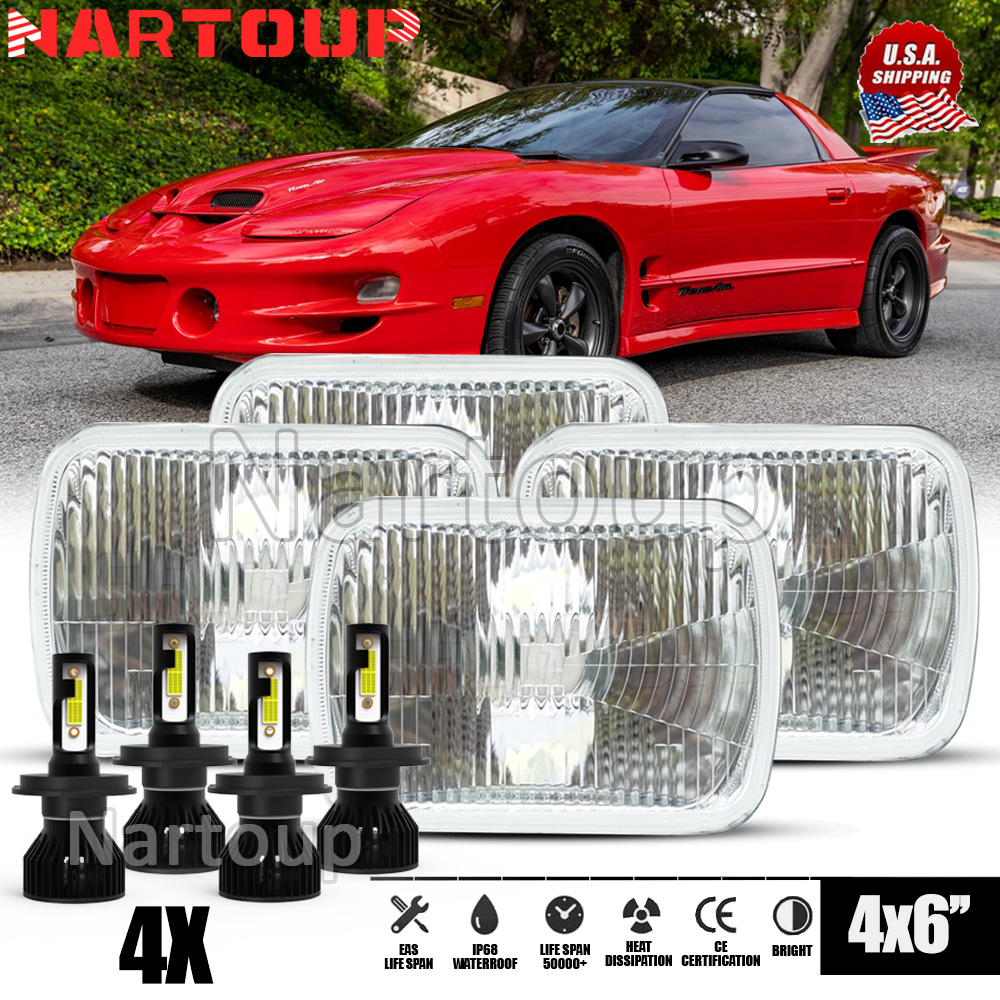Vintage Part: Yes Universal Fitment: Yes Beam Type: High Low Beam Fitment Type: Direct Replacement Manufacturer Warranty: 1 Year Item Length: 6 in Voltage: DC 9-32V ( Fit 12V,24V Vehicle ) Color Temperature: 6000K Interchange Part Number: 4X6 inch Square Rectangle H4656 H4651 4651 4652 H4666 165mm 100mm Type: High Low Beam Headlight Assembly Manufacturer Part Number: 4x6" INCH Stock Style HOUSING + 4Pcs LED Bulbs Other Part Number: H4656,H4651,4652,4651,H4740,H4739,H4666 Bulb Life Hours: Up to 5,0000 Hours Lighting Type: Specialty Head Light Bulb Housing Color: Chrome Lighting Technology: LED Features: DOT-Certified, SAE-Certified, Sealed Assembly, CAPA-Certified Note 1: No mounting bracket Wattage: 100W Headlight Style: Glass Replacement Headlights Package includes: 4x 4X6 inch Headlight Housing + 4x LED Bulbs Placement on Vehicle: Front, Left, Right Items Included: 4X High Low Beam LED Headlights +4X LED Housings Model: 4Pcs 4X6 inch High Low Beam Headlight Housing+4x LED Bulbs Note 2: Professional installation is recommended After-sale guarantee: Money back or replacement (buyer's choice) Mounting Style: Screws Material: GLASS/METAL MATERIAL Item Width: 4 in Finish: Smooth Size: 4X6 INCH Superseded Part Number: H4656, H4651, 4652, 4651, H4740, H4739, H4666 Brand: Nartoup Lumens: 10000LM Performance Part: Yes Surface Finish: Black Housing w/ Clear Lens Number of Bulbs: 4