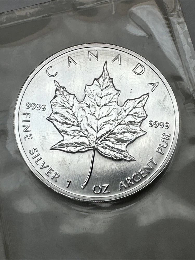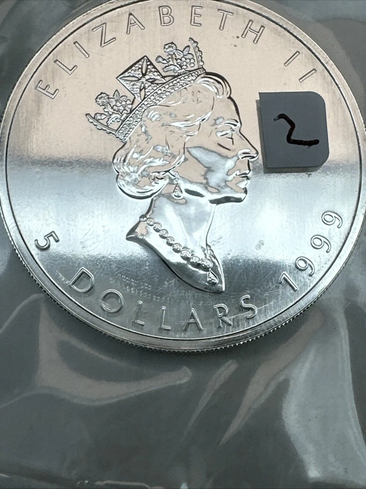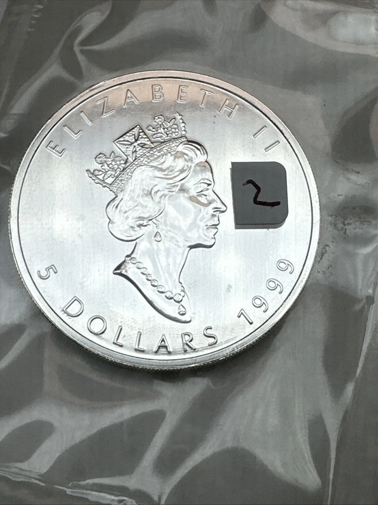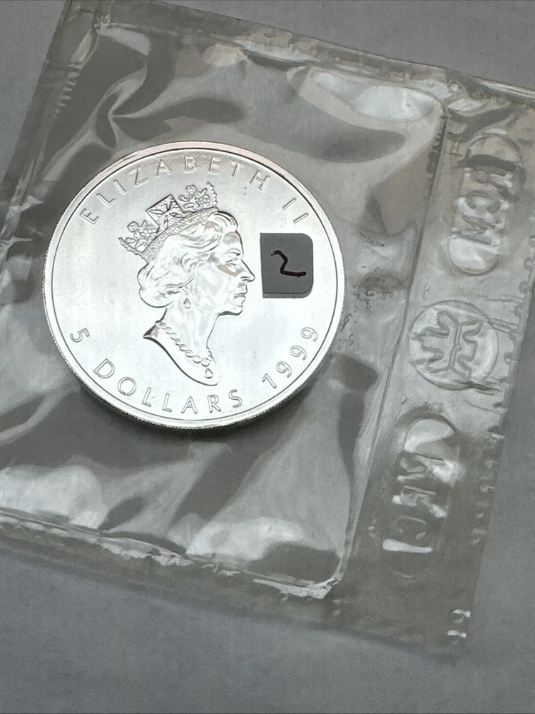 Coin: Canadian Maple Leaf Year: 1999 Total Precious Metal Content: 1 Troy Ounce Precious Metal Content per Unit: 1 oz Brand: RCM Composition: Silver Certification: In Original Packaging Fineness: 0.9999 Brand/Mint: Royal Canadian Mint Country/Region of Manufacture: Canada Grade: Ungraded Strike Type: Business