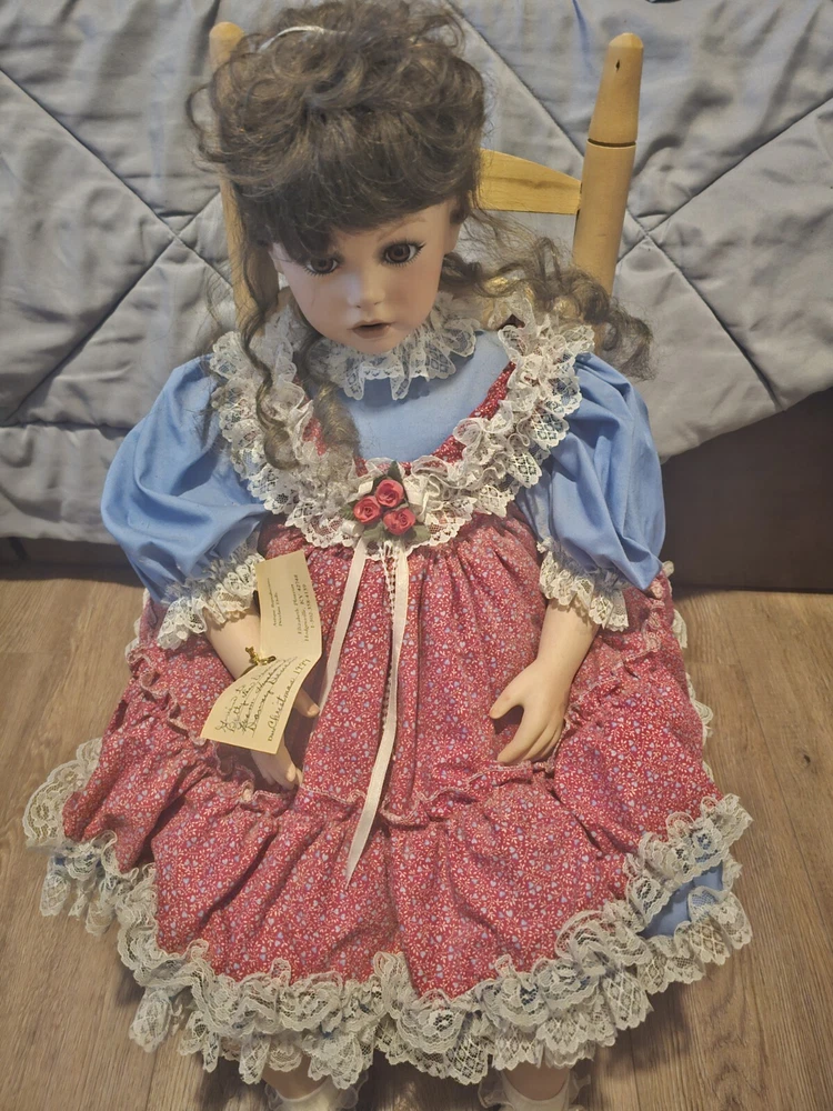 1999 Antique Productions Customer Porcelain Doll With Rocking Chair