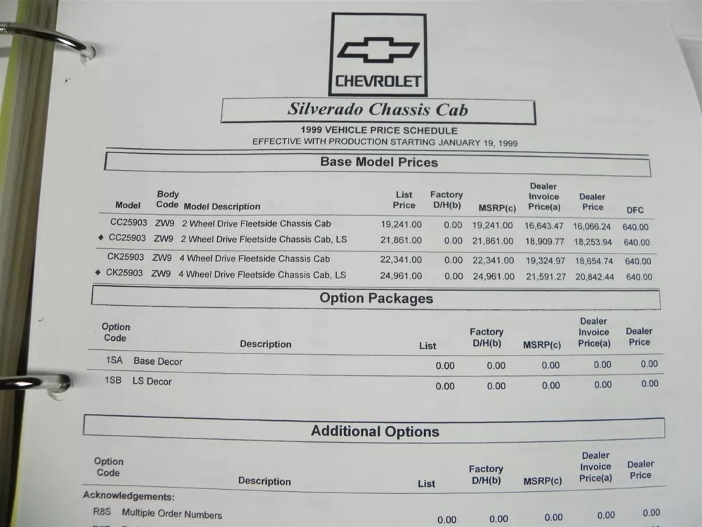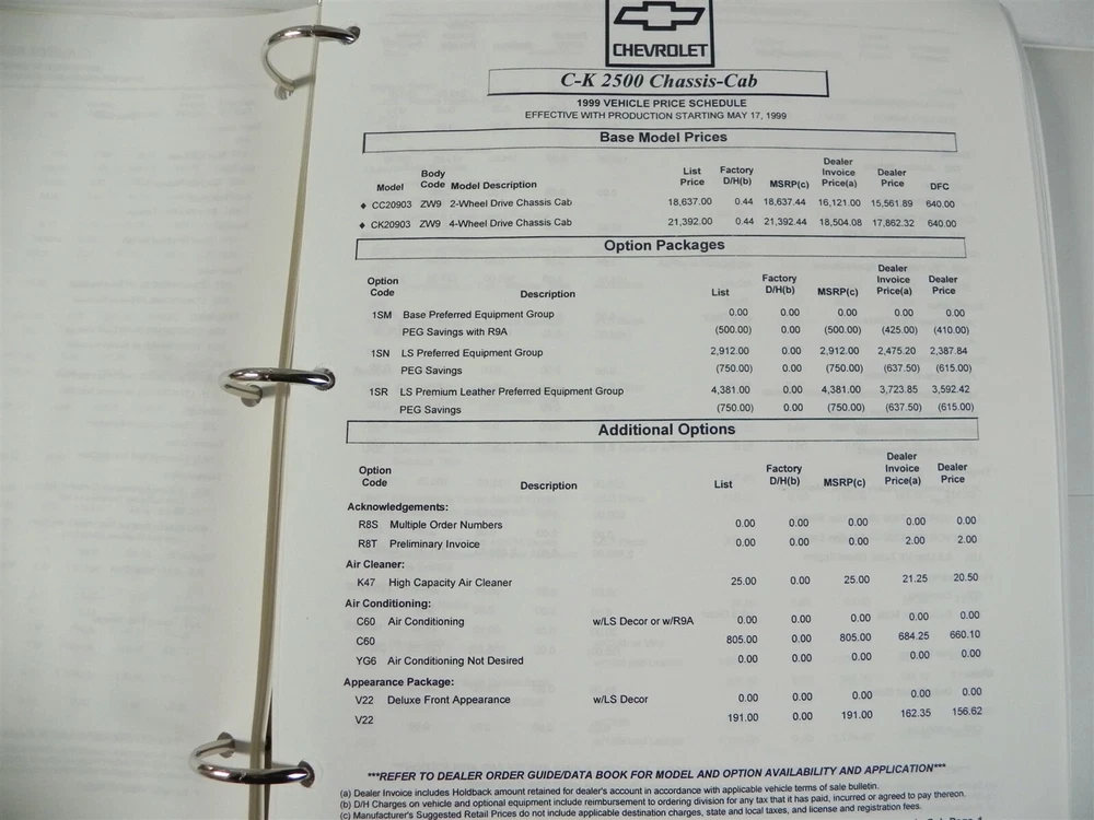 1999 CHEVROLET PONTIAC BUICK OLDSMOBILE CADILLAC COMPLETE FACTORY DEALER PRICE MANUAL VERY RARE Original GM publication-Not a cheap reprint 1999 CHEVROLET PONTIAC BUICK OLDSMOBILE CADILLAC COMPLETE FACTORY DEALER PRICE MANUAL SPINE TIGHT. NO LOOSE PAGES See photos below for details. ABOUT US Jones Vintage Parts has been a family-owned business for over 40 years. We specialize in rare and vintage NOS and used parts for all makes and models from the teens to the 70s. We're passionate about uncovering and restoring the stories of the treasures from your grandparents and great grandparents history. We believe in breathing new life into the world's first modes of transportation. New vintage all the time! SHIPPING INFORMATION Purchased items will generally ship Monday through Friday, within 3 days via USPS Flat Rate or First Class upon payment receipt. Larger items will be shipped via FedEx Ground or UPS. Multiple same-day purchases will be combined for discounted shipping (request a revised invoice to receive bulk shipping discount or notify us of future purchases). International shipping also available. RETURN POLICY Our goal is your satisfaction. If you are unhappy with your order for any reason items may be returned for parts credit within three (3) days of receipt, and you will be charged a 10% restocking fee. There are no shipping refunds. Exchanges will be billed appropriate freight. All return items must be complete, undamaged, unaltered and in resale condition. You may be interested in our other eBay listings . Powered by SixBit's eCommerce Solution