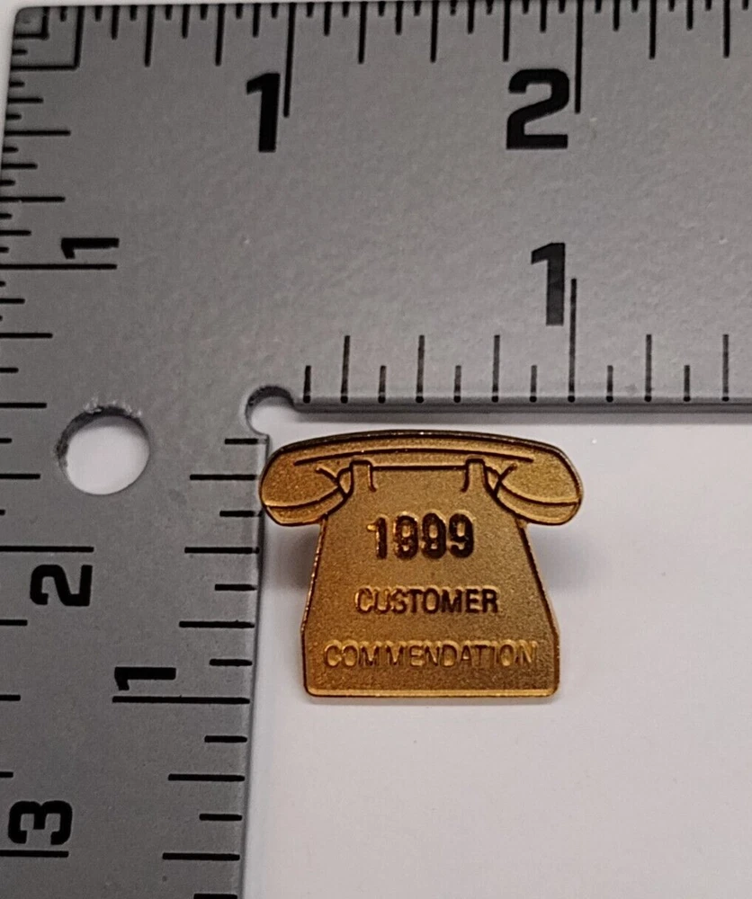 Free Shipping! Pre-owned 1999 Customer Commendation Gold Tone Telephone Lapel Tack Pin Shows normal surface and paint wear. Please refer to the photos for details. If you have any questions, please send a message. Thank you.