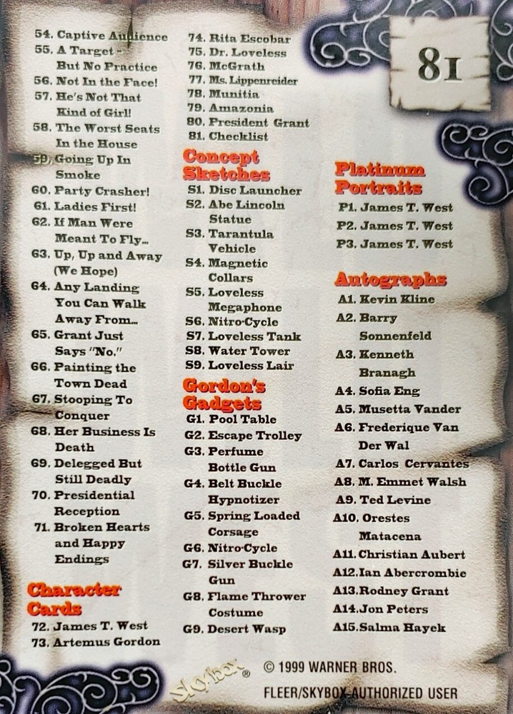 1999 Fleer/Skybox Wild Wild West Movie Base Card Singles #1-81 You Pick Buy 2 Get 2 Free! Near Mint! ***Please note - the main image is not the card you receive! It is the card number selected within the drop down menu. When mixing & matching movie titles the shipping will charge you an additional $1.25 for the 1st card for each new movie title chosen, but I'll always refund you back that difference ( -$1.10 ) for each alternate title so it is just $1.25 for the 1st card and $0.15 for each additional. Unfortunately there's no way around this at this time according to eBay until they give me more promotional rule shipping options to choose from where it doesn't do this. This only applies to mixing & matching movie titles within the same purchase, if purchasing from just one movie title it auto calculates just fine. Will ship inside a penny sleeve, inside a top loader, inside a team bag. If cards total more than 15 in a single transaction they'll be an additional tracking number provided via eBay envelope. ( so X2 tracking numbers total ) More than 31 in a single transaction will ship Ground Advantage. Breakdown below: 15 cards or less - one tracking number via eBay envelope 16-30 cards - two tracking numbers via eBay envelope 31+ cards - Ground Advantage Any questions, just message me, thanks for looking! :)