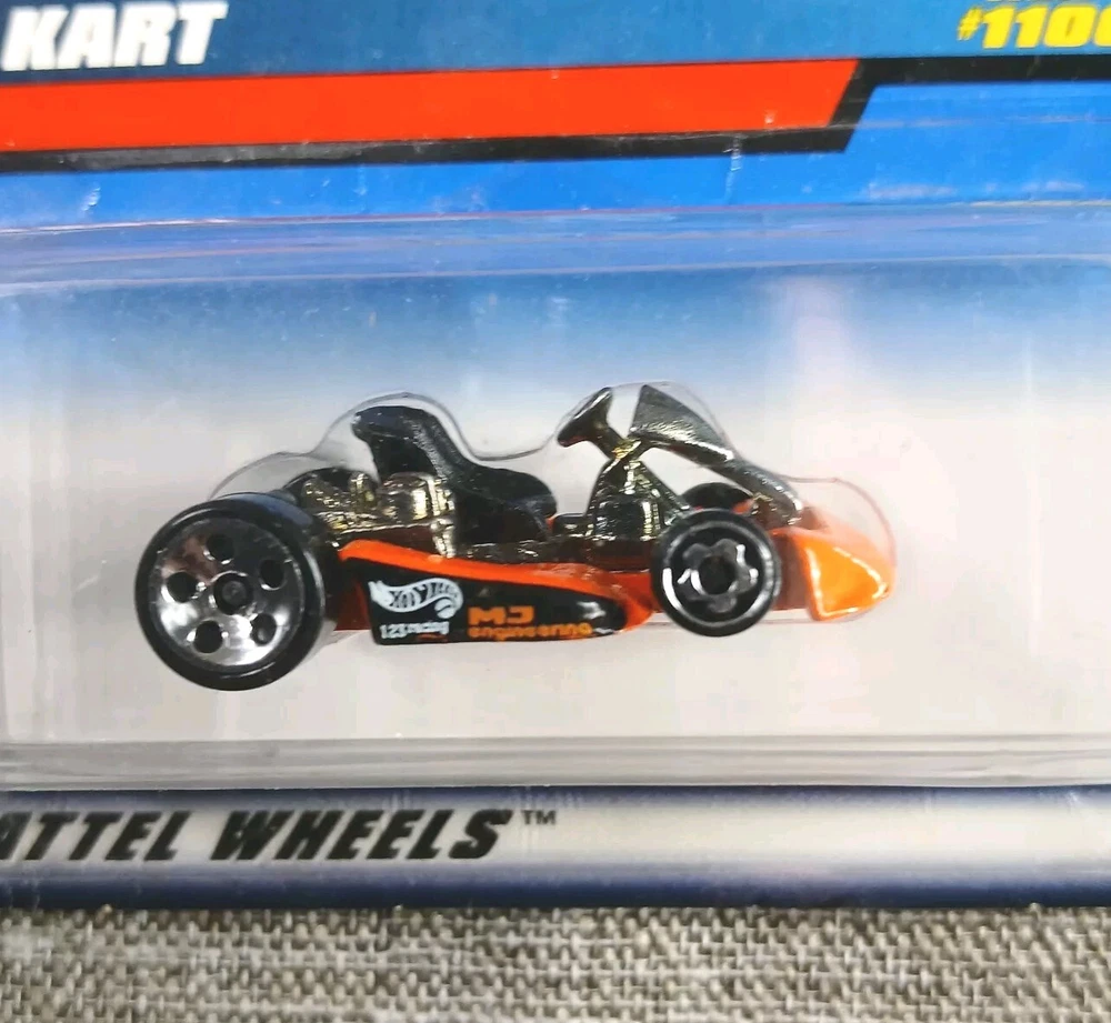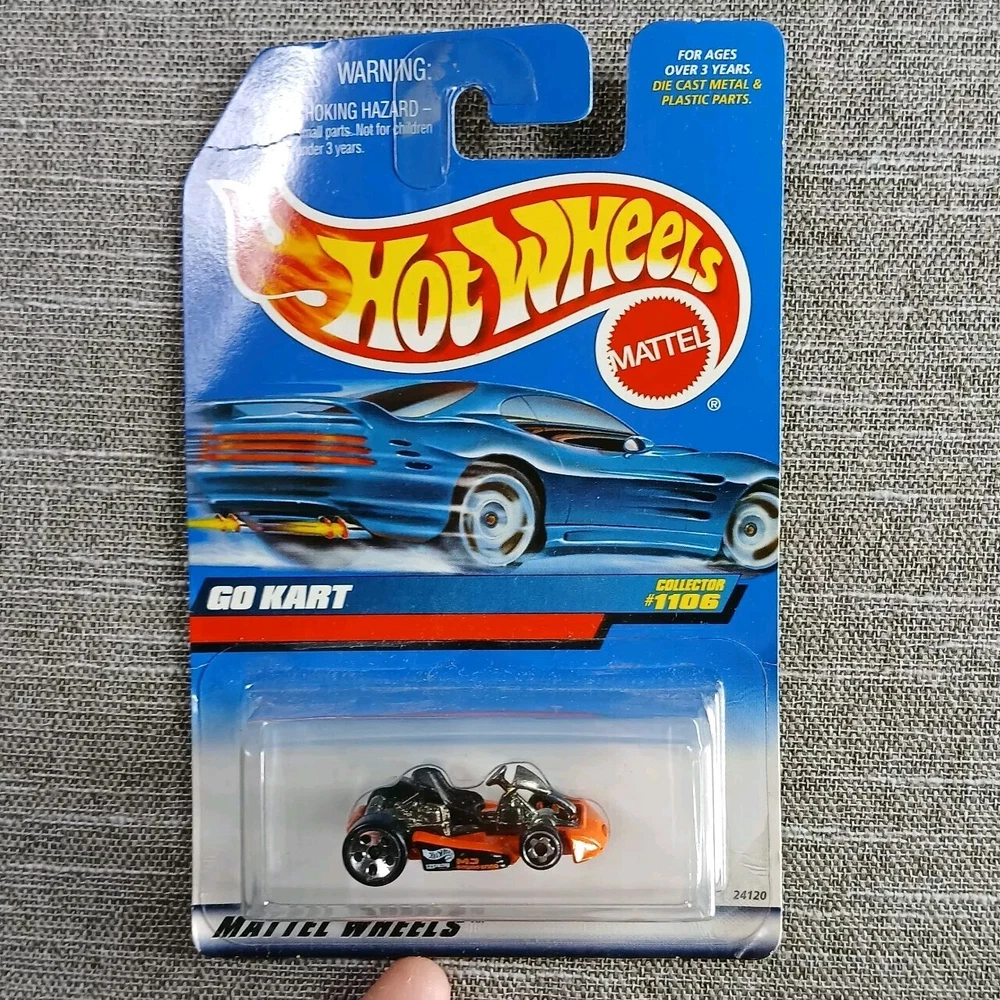 This 1999 Hot Wheels Collector No #1106 GO KART is a perfect addition to any die-cast car collection. The orange color and chrome 5-hole spoke wheels make it a standout piece. The vehicle is made of a combination of die-cast metal and plastic, ensuring durability and authenticity. The unopened box and 1:64 scale make it a great gift for collectors of all ages. The recommended age range is 3+, but children and adults alike will appreciate this classic Hot Wheels model. The car was manufactured in Malaysia and is part of the Mattel Wheels theme. Don't miss out on this opportunity to add a piece of Hot Wheels history to your collection. Condition: Brand new. Perfect condition, Please review all photos for additional details.