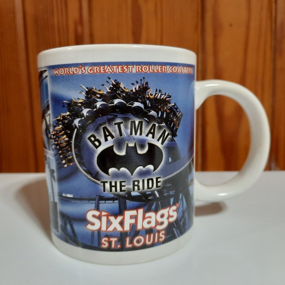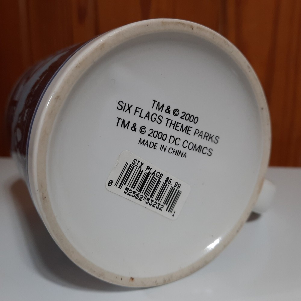 Embrace your love for the iconic DC Universe with this 1999 SIX FLAGS BATMAN THE RIDE Coffee Mug. A true gem for collectors and fans alike, this rare piece features the beloved Batman character and is a vibrant addition to any mug collection. The porcelain construction ensures durability while the multicolored design captures the essence of the American style. This mug, manufactured between 1990 and 1999, is a unique memorabilia item from the Six Flags theme park, celebrating one of the most classic rides. It is perfect for all occasions, whether you're enjoying a hot cup of coffee on a chilly morning or settling in for a cold beverage while reminiscing about your favorite cartoon heroes. Add this piece to your assortment and enjoy a piece of nostalgia with every sip.