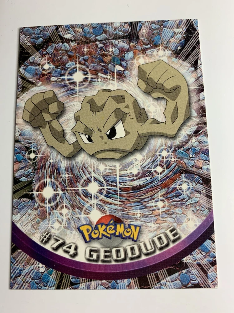 1999 Topps Pokemon TV Animation Red Logo #74 Geodude Up for sale is a 1999 Topps Pokemon TV Series card. Please review pictures as the card pictured is of the actual card that you will receive. The card will be placed in a penny sleeve and shipped in a cardboard box with delivery tracking. I have 100% positive feedback and have been selling items on ebay for many years. Let me know if you have any questions or need additional pictures and I will be happy to provide them. Yes - I do offer combined shipping. Additional shipping cost for each ungraded (raw) card is FREE and for each PSA graded item is only $0.50. Pokémon Official Trading Cards , informally known as Pokémon Trading Cards series 1 , was a set of Pokémon-themed trading cards manufactured by Topps in 1999. There were 90 cards in total: 76 Pokémon cards, 13 character cards, and a checklist card. Each of these 90 cards also had two foil card versions (silver and rainbow) in their main United States distributions. This set contained no bonus "chase cards". In the United States There were four different printings. These cards all had an oval Nintendo seal. The printings are distinguished by a blue, black, green, or red Topps logo, with card texts being updated between the first (blue) and second (black) printings. Due to an error, all foil cards after the first printing were printed with black logos, but can still be distinguished by the differences in their debossings. § 1st printing: blue logo on all cards, foil cards had a smooth texture with no debossings. § 2nd printing: black logo on all cards, Pokémon foil cards were debossed with rays and starbursts, while TV cards had a sandpaper finish. § 3rd printing: green logo on non-foil cards only, Pokémon foil cards were debossed with flames and teardrops, while TV cards had dots and rectangles. § 4th printing: red logo on non-foil cards only, Pokémon foil cards were debossed with Poké Balls and targets, while TV cards had dents. A fifth printing featuring foil cards with a smooth finish but a black logo (features of both the 1st and 2nd printings) was also produced to an uncertain extent. Pokémon Trading Cards series 2 was a set of Pokémon-themed trading cards manufactured by Topps in 2000. There were 72 cards in total: 41 Pokémon cards, 5 "Heroes & Villains" cards, 25 episode cards, and a checklist card. Each of these 72 cards also had two foil card versions (silver and rainbow). In addition, there were 27 bonus "chase cards" not included on the checklist, including 12 die-cut embossed cards, 10 animation stick-on cards, and 5 clear cards. Pokémon Trading Cards series 3 was a set of Pokémon-themed trading cards manufactured by Topps in 2000. There were 72 cards in total: 34 Pokémon cards, 12 "Heroes & Villains" cards, 19 episode cards, 6 puzzle cards, and a checklist card. Each of these 72 cards also had two foil card versions (silver and rainbow). In addition, there were 27 bonus "chase cards" not included on the checklist, including 12 die-cut embossed evolution cards, 10 pop-up cards, and 5 clear cards.
