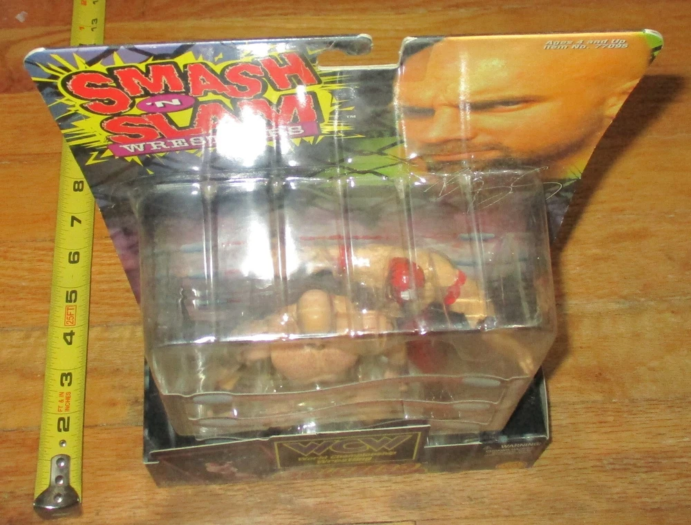 This item is a in Package WCW Toy Biz Wrestling Figure of former WCW NWO WWF WWE Wrestling Star Who's Next Bill Goldberg. He was produced in 1999 by Marvel Toys and is in his sealed Package with only minor wear to the edges and corners as can be seen in the photos. He is a Smash and Slam and includes a Rey Mysterio figure as a bonus. Shipping outside of the United States will be extra. Please check out my other wrestling auctions and contact me with any questions or wrestling related item requests. Serious bidders only as negative comments will be placed if bids are not completed. Good Luck