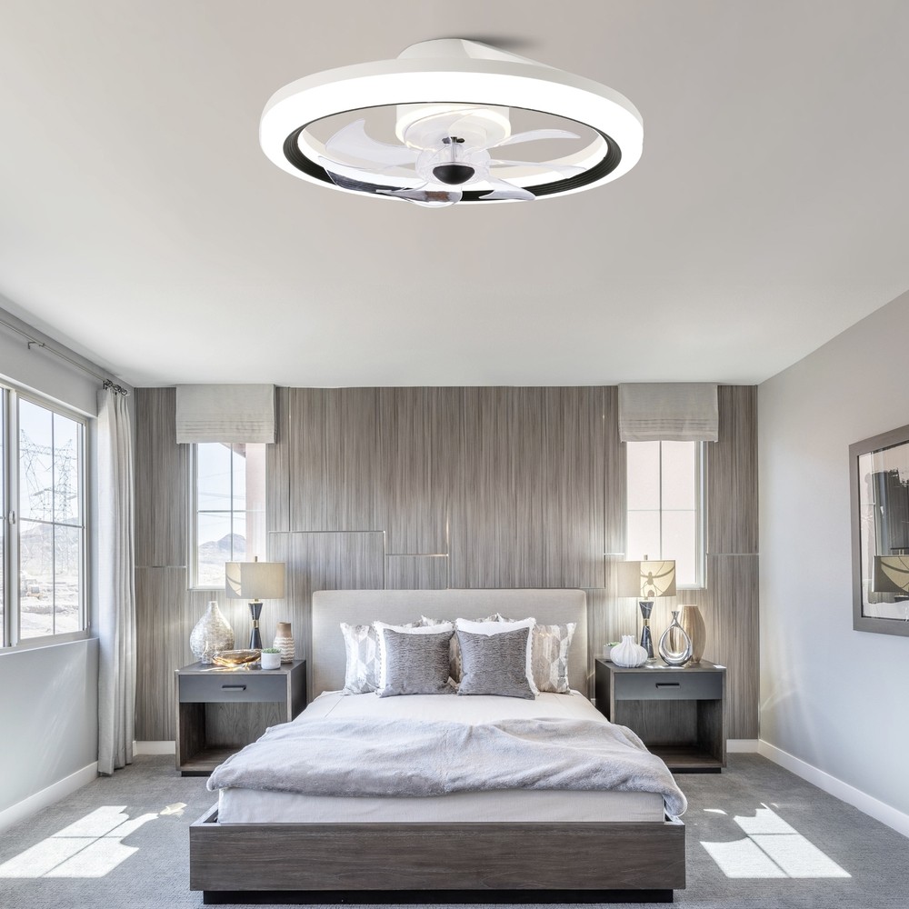 Introducing the perfect addition to your modern home a ceiling fan with a stunning matte finish that will elevate any room's décor. With its six fan speeds and three light temperature options, this fan provides you the ultimate cooling and illuminating experience . Its reversible whisper-quiet motor ensures that the fan operates smoothly and quietly, giving you the ultimate relaxation experience. With phone app control, you can easily operate the fan from anywhere in the room, adjusting the 6 fan speed or 3 light temperature to suit your needs.Features: Eye-catching matte white finish adds a touch of modern style to your décor Remote control and phone apps control give your the most convenient ceiling fan experience. 6 fan speeds, 3 light temperatures and dimming function are for you Free Shipping Over $49.99* Details CurveCurio 19" Matte White Flush Ceiling Fan App Control Remote Control 6 Speed Product Description: Introducing the perfect addition to your modern home a ceiling fan with a stunning matte finish that will elevate any room's décor. With its six fan speeds and three light temperature options, this fan provides you the ultimate cooling and illuminating experience . Its reversible whisper-quiet motor ensures that the fan operates smoothly and quietly, giving you the ultimate relaxation experience. With phone app control, you can easily operate the fan from anywhere in the room, adjusting the 6 fan speed or 3 light temperature to suit your needs. Features: Eye-catching matte white finish adds a touch of modern style to your décor Remote control and phone apps control give your the most convenient ceiling fan experience. 6 fan speeds, 3 light temperatures and dimming function are for you to choose from, able to meet the needs of all kinds of occasions Reversible whisper-quiet motor that circulates air in the winter and cools your space in the summer. Dimensions: 19.7 * 19.7 * 4.9 Additional Info : 19-inch ceiling fan is perfect for small rooms (up to 75 sq ft.) Slope Ceiling supported up to 15 degrees This product is UL listed for a dry environment MaterialSteel, Plastic ColorWhite FinishMatte LightIncluded LED Kit Light Wattage28W Light Kit replaceableYes DimmableYes Light color tone3warm light(3000k); warm white(4500k); white light(6000k) Motor wattage15W PRM501-599-692-788-892-994 (6 speeds) Fan blades7 reversibleYes Phone App ControlYes RemoteYes Remote control included (battery not included, please use AAA batteries) WarrantyLifetime on motor and one year on all the other parts