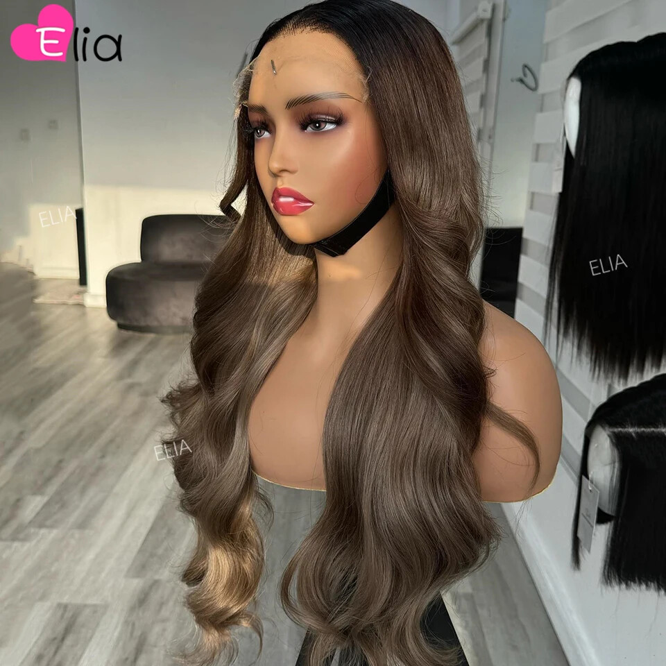 1B Grey Brown Body Wave Lace Front Human Hair Wig for Women 5x7 Lace Closure Wig
