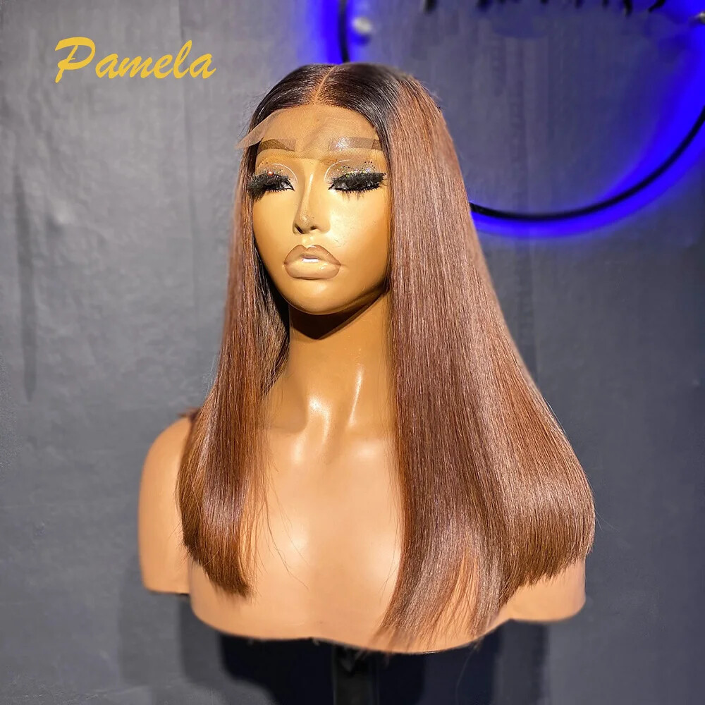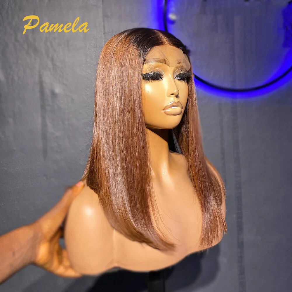 $ 109.51Ombre 1b/4 Straight Bob Wig with Transparent Lace Closure Glueless Human Hair