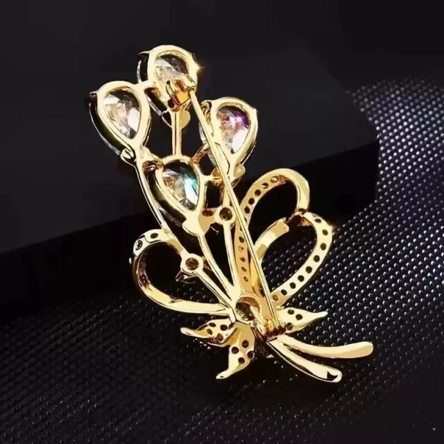 1Ct Pear Cut Simulated Diamond Unisex Custom Brooch Pin 14K Yellow Gold Plated