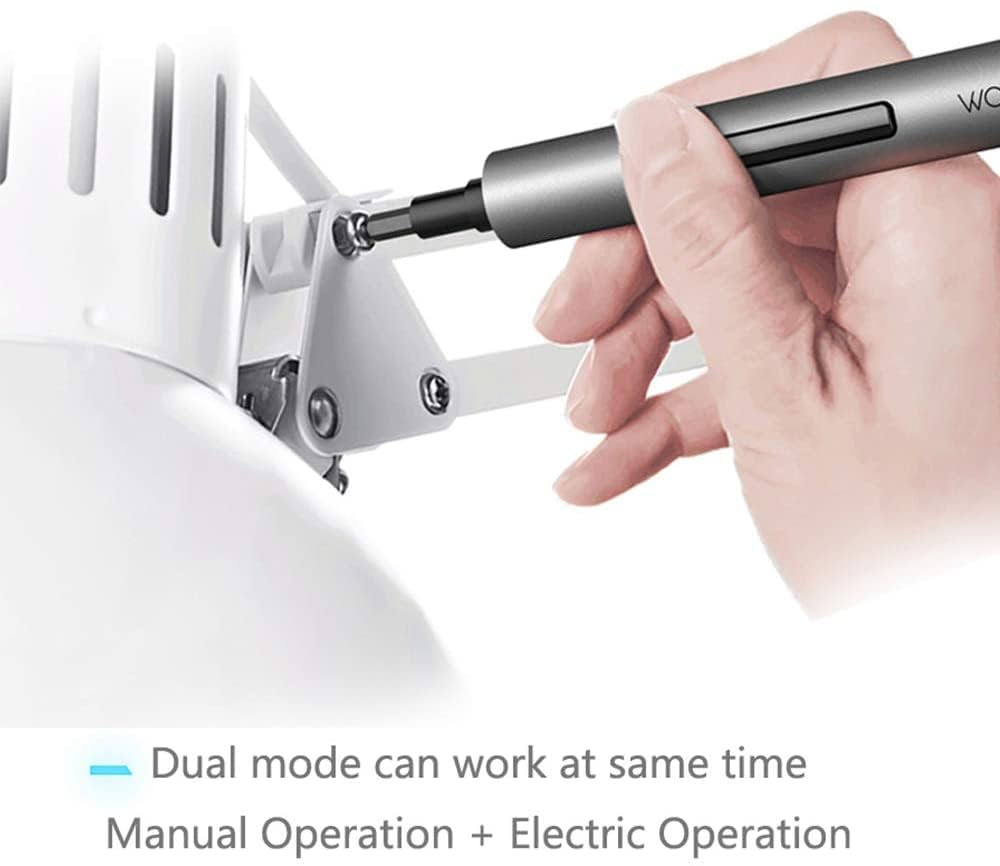 Mini 1F+ Electric Screwdriver, with 56pcs screw bits.Slim S2 aluminum alloy housing body with pen shape design, easy to use. With Lithium-ion Battery Charge can work 8 hours continuously; Continuous no-load for 2 hours, and endurance for 180 days. With 3 LED Shadowless light, Equipped with magnetic board, holding the screws taken off from the reparing items, no screws lost. Automatic and Manual operation design, ensure hight working efficiency. Screwing, Drilling and Threading muti-function, meetiing your different woring demands.