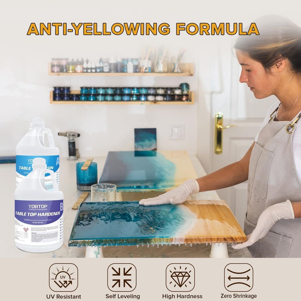Epoxy resin 1 gallon kit, excellent clarity, clear, easy mixing, free delivery Product Description Waterproof Material Heat Resistant About this item 【Ultra-Glossy/Crystal Clear Epoxy Resin】As an Amazon brand seller,we have our own R&D and manufacturing team. In order to achieve a high-gloss,yellowing-resistant surface,we all use higher-grade safe and reliable raw materials.Compared to other resin kits on the market,our epoxy resin 1 gallon kit are rock solid with very few air bubbles, naturally defoaming,no ripples,and a glass-like finish for a long-lasting,ultra-clear look that won't yellowing. 【Food Safe, Low Odor】Our food safe epoxy resin 1 gallon kit formula is VOC free, BPA free, odorless,and meets FDA food standards.Allowing you to create more freely,you can use it with confidence.Safe grade epoxy resin can be used on countertops,Jewelry,decorative items,kitchens,and more. 【Market-Leading Performance】Crystal clear epoxy resin and hardener is the perfect formula to bring your art to life while providing ultimate durability. Our craftsman-approved table top epoxy resin cures crystal clear, perfectly clear, and provides a stunning, ultra-glossy finish without the need for polishing. 【Easy to Use】clear epoxy resin needs a 1:1 volume ratio, 45-minutes work time, demolding in 8-10 hours, and fully cured in 24 hours..No other additives are needed, and it can be colored according to creativity. Perfect for beginners who have time to mix bright colors and create eye-catching pieces.