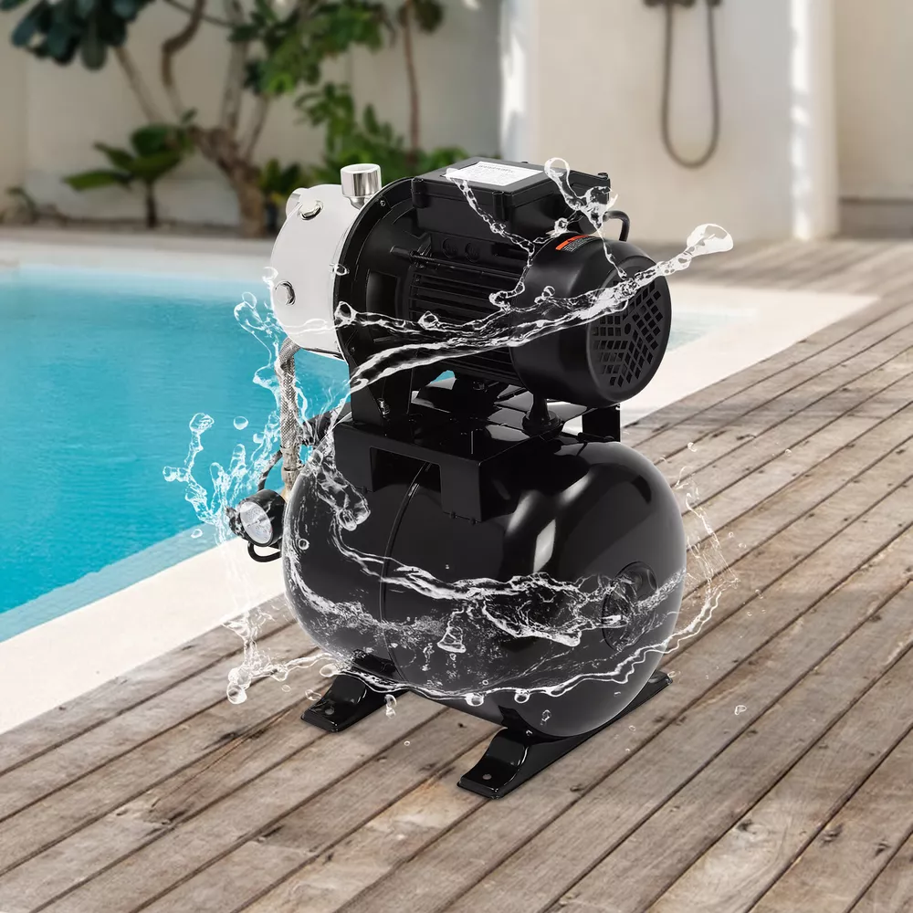 Details IP44 Protection Level: It can prevent dust and rain from accumulating to a certain extent, and prevent rain or water from splashing into the interior of the equipment, thus prolonging the service life of the product. Support Base: With pre-drilled holes on the base, you can secure this product on the ground with screws for better stability during operation. Application The product is suitable for long-distance water transportation, garden irrigation, farm irrigation, lawn sprinkler irrigation, high-rise living water, faucet and shower pressurization, groundwater and well water extraction, water supply, and so on. Package Included 1* Shallow Well Pump 1* PTFE Tape 1* Multi-language Manual 1HP Irrigation Water Pump Shallow Well Pump with Pressure Tank 3420r/min 0.75kw Description Built with high-quality materials, this shallow well water pump with a powerful pure copper motor and a 6.34-gallon pressure tank is durable and efficient, making it an ideal tool for your home tap water boosting, agricultural or gardening pumping, and irrigation work. The automatic pressure switch and self-priming system make the operation of the product easier and smarter, making your life more comfortable and your work more efficient. Key Features Build to Last : With a high-quality stainless steel pump head, cast aluminum pump casing, and the paint spraying process, the product is sturdy, resistant to rust, corrosion, and deformation, and can keep practicality for a long time. High Efficiency : It is powered by a 1HP motor that can spin up to 3420rpm, giving the product a maximum flow rate of 105.94 ft³/hour, which provides the power to pump water faster and easier. High Pumping Head: With a maximum head of 147.64 feet, the pump has a wide range of irrigation distances and acreages, which can significantly save the time and cost of manual transportation. Thoughtful Design: The 6.34gal pressure tank and automatic pressure switch allow the product to automatically start at 20psi and shut off at 40psi. In addition, the clear pressure gauge allows you to easily observe and promptly make adjustments. Safety Guarantee: The product has overload, overheating, and water shortage protection, which will make the product automatically stop working and cut off the power to ensure the safety of use. Excellent Sealing Performance: The product is equipped with a durable carbon ceramic mechanical seal and PTFE tape to prevent leakage and extend product life. Quick Heat Dissipation : The powerful fan and heat emission holes give the product excellent heat dissipation performance to prevent the product from overburning. Customer Service: We aim to provide quality products and services. If you have any problems, please feel free to contact us. We will reply and solve the problem for you as soon as possible. Details IP44 Protection Level: It can prevent dust and rain from accumulating to a certain extent, and prevent rain or water from splashing into the interior of the equipment, thus prolonging the service life of the product. Support Base: With pre-drilled holes on the base, you can secure this product on the ground with screws for better stability during operation. Application The product is suitable for long-distance water transportation, garden irrigation, farm irrigation, lawn sprinkler irrigation, high-rise living water, faucet and shower pressurization, groundwater and well water extraction, water supply, and so on. Specifications Color: Black Style: Modern Process: Spray Paint Material: Stainless Steel, Cast Aluminum, Ceramic Copper Type: Pure Copper Brushless Motor Plug Type: US Standard Flow Rate: 3m³/105.94ft³/h Max. Head: 45m/147.64ft Power: 0.75kw/1HP Speed: 3420r/min Input Current: 7A Frequency: 60Hz Voltage: 110V Capacitance Capacity: 35μF Protection Level: IP44 Insulation Grade: B Water Inlet Size: 2.54cm/1in Water Outlet Size: 2.54cm/1in Power Cord Length: 1m/3.28ft Tank Capacity: 24L/6.34Gal/25.36qt Suitable Water Temperature: 0-75℃/32-167℉ Phase: 1~Mot Noise: 0-30dB Thread Type: G Suitable Well Depth: 8-25m/26.25-82ft Product Overall Size: 45*27.5*49.5cm/17.72*10.83*19.49in Tank Size(D*H): 28*35cm/11.02*13.78in Motor Size(D*H): 13.5*37cm/5.31*14.57in Base Size: 24*27.5cm/9.45*10.83in Packaging Size: 50*35*58cm/19.69*13.78*22.83in Gross Weight: 13.2kg/29.1lbs Package Included 1* Shallow Well Pump 1* PTFE Tape 1* Multi-language Manual Notes Please check the size carefully before ordering. Please read the manual carefully before operating the pump. Please do not run the pump without water. Please be sure that the pump is properly grounded before operating. Please allow the slight color difference caused by the shooting light and 1-3cm error due to manual measurement, and make sure you do not mind before you order. Payment Delivery details Terms of sales About us Contact us Payment We accept ebay payment 。 Fees such as import duties, taxes are not included in the item price or shipping costs. These charges are the buyer's responsibility. Delivery details Shipping: 2-9 working days to: USA Terms of sales We maintain high standards of excellence and strive for hundred percent customer satisfaction. Feedback is very important to us. We hope that you contact us immediately before you give neutral or negative feedback, so that we can address your concerns. It is impossible to address issues if we do not know about them! About us Your satis faction is our ultimate goal. We work hard to earn your trust and future business. Our certified technicians have tested each item before shipping. The unit comes with 1 year limited warranty on all manufacturing defects. a) If you receive a defective item, you may return it or ask for a discount. Please contact us within 14 days after you receive the package. b) What you returned must be intact and in its original packaging as re? u. Customer is responsible for shipping costs of the returned item. c) We will cover the cost of shipping back t with the shipping rate 