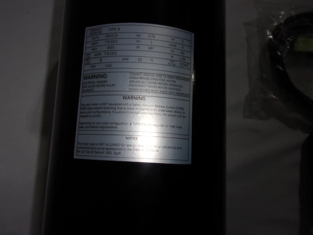 USQ1102 1HP 3450RPM 48Y Frame Pool Motor Square Flange Pool Pump Motor 115/230V. Pump Is New, Has Small Dent On Back Cover. See Actual Pictures. You Will Receive Exactly What Is Shown.