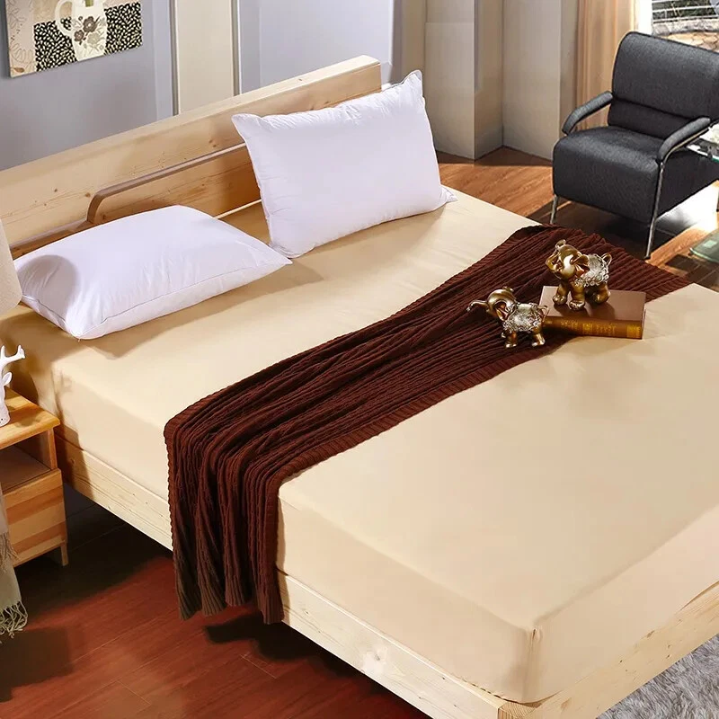 LAGMTA 1Pc 100% Polyester Fitted Sheet Solid Color Mattress Cover Sheet Four Corners With Elastic Band Bed Sheet Package included: 1 pc * fitted sheet The depth of this sheet is 25 cm Fabric: 100% Polyester Due to the different lighting and screen, the color of the product may be slightly different with the image, it is not a quality problem. If you also want to buy matching pillowcases, please click on the image below:
