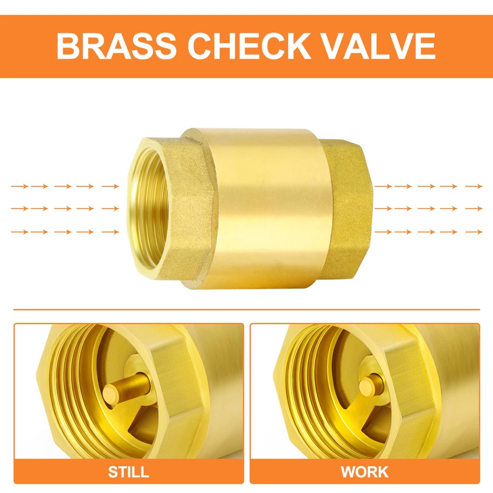 1PC Brass Check Valve 1-1/2 Female Thread One Way Backflow Preventer Valve