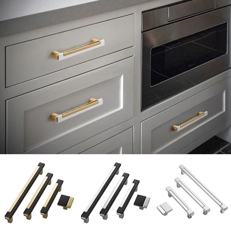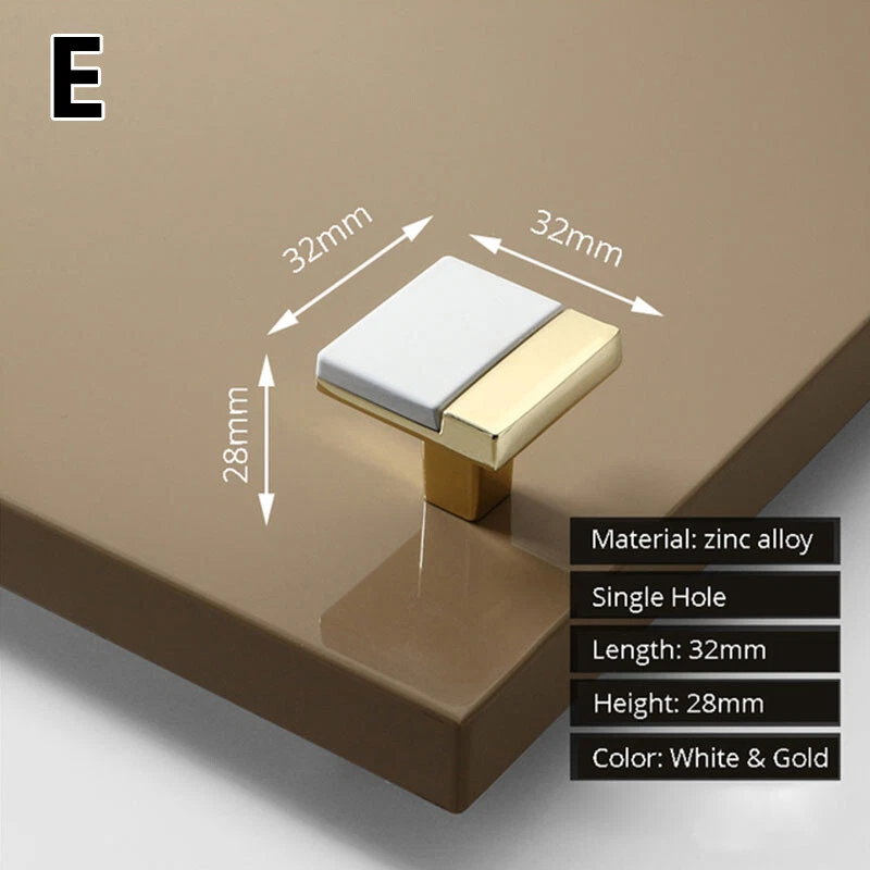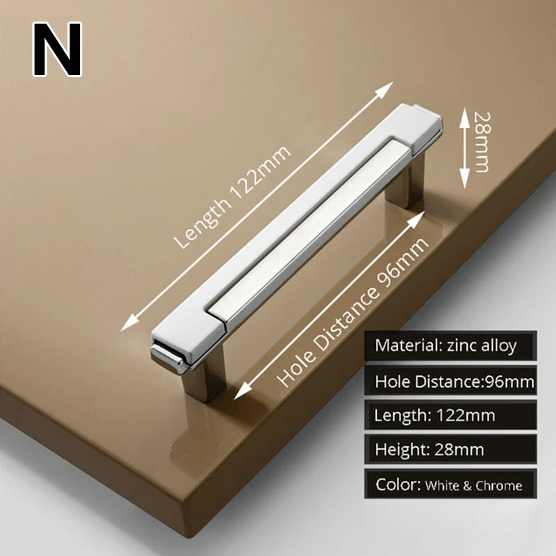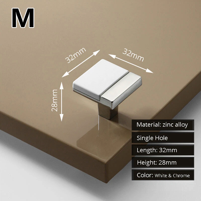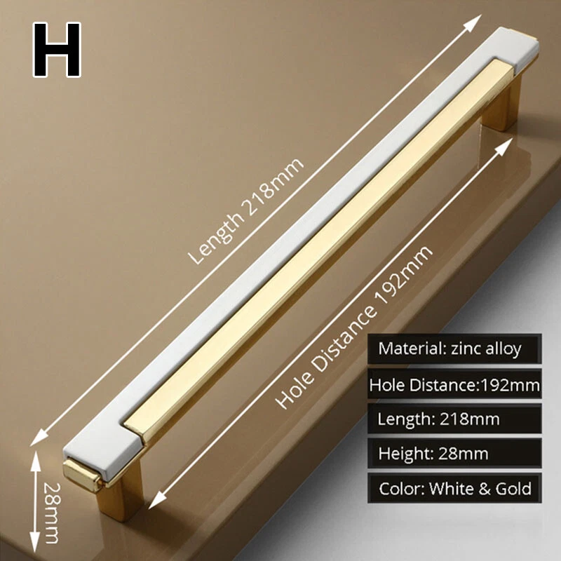 Product Name: Two-Color Nordic Kitchen Cabinet Door Handle Drawer Pull Product Category: Furniture Handle Color: Gold, Silver, White Material: Zinc Alloy Size: S: 32x28mm, M: 122x28mm, L: 154x28mm, XL: 218x28mm Packing: OPP Bag Packing List: Two-Color Nordic Kitchen Cabinet Door Handle Drawer Pull X1