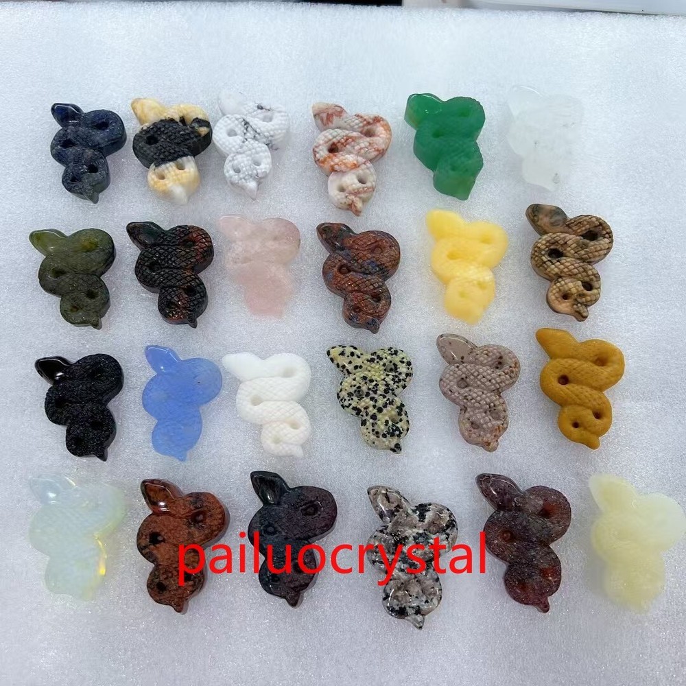 $ 8.131pc Natural Labradorite Snake Skull Quartz Crystal Skull Carved Figurines Gem 2"