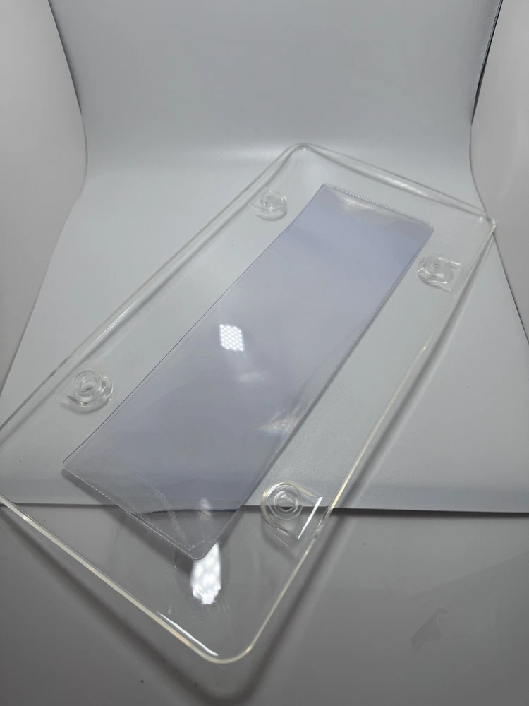 FOR OFF ROAD USE ONLY!!! Protect your license plate from scratches and bubbles with this shield frame that offers a bubble design to keep your plate safe from the elements. This frame is perfect for anyone looking to add a touch of style to their vehicle while still keeping their license plate secure. Get this 1-pack clear license plate cover today and upgrade the look of your car!