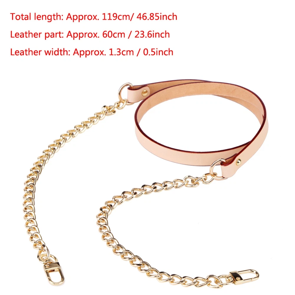 Feature: 1. Made high quality genuine leather, fashionable and elegant. 2. Perfect for DIY hand accessories. 3. Exquisite craft, smooth surface. 4. Comfortable to touch, durable for use. 5. Two color for your choice, you can choose the one you like. Specification: Description: This bag strap is made of genuine leather, smooth, and soft. There are two colors for you to choose, suitable for DIY hand accessories. Features: Made high quality genuine leather, fashionable and elegant. Perfect for DIY hand accessories. Exquisite craft, smooth surface. Comfortable to touch, durable for use. Two color for your choice, you can choose the one you like. Specification: Main material: Leather + Metal Chain Color: Original Color, Black(Optional) Total length: Approx. 119cm / 46.8 Weight: 97g Quantity: 1pcs Package Included: 1 x Bag Strap Note: 1. There might be some color difference because of genuine leather. 2. Please allow small size error due to manual measurement. Thanks for your understanding.