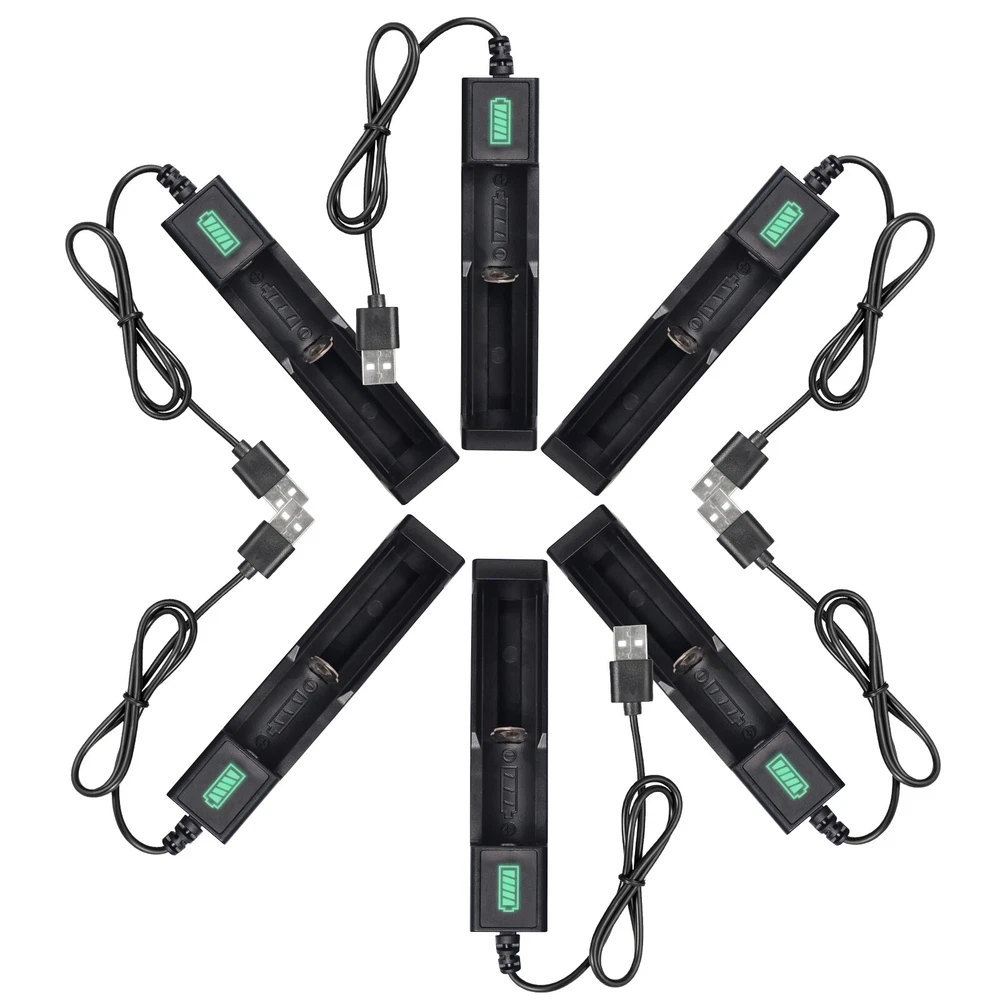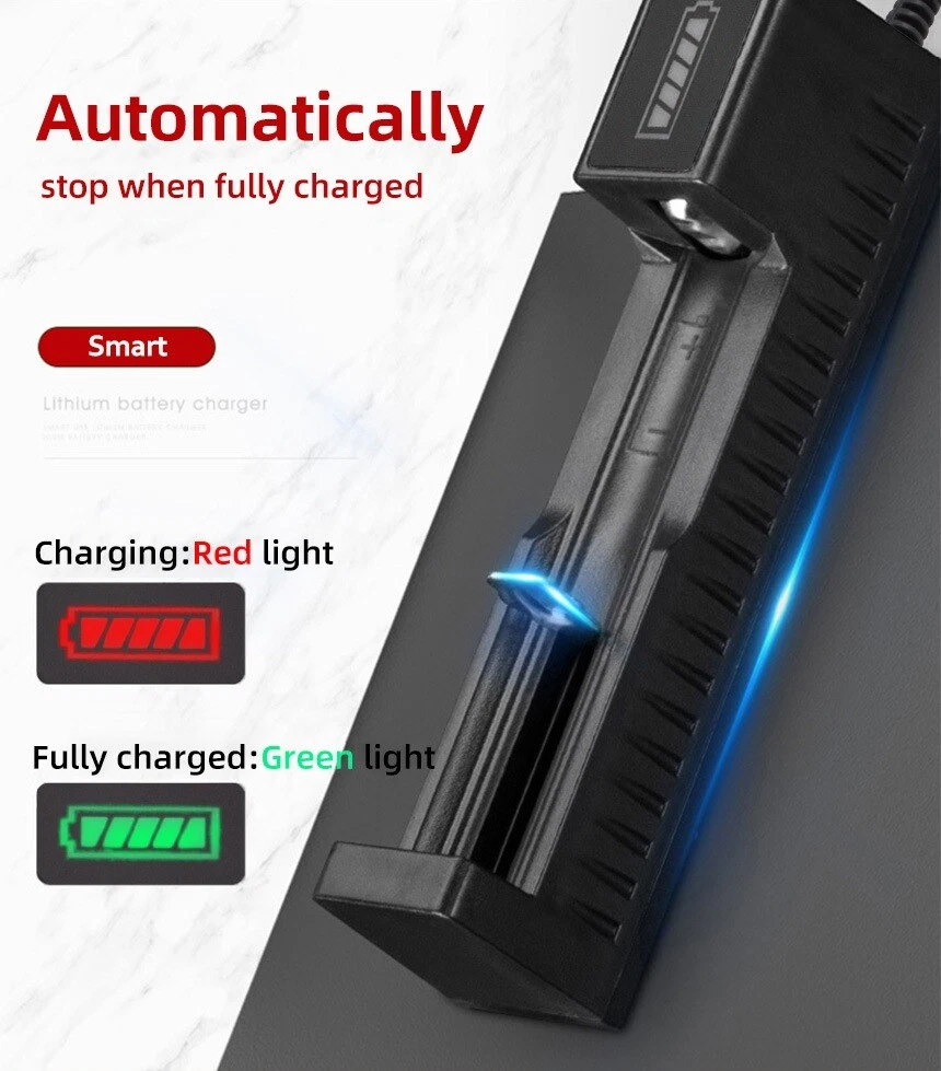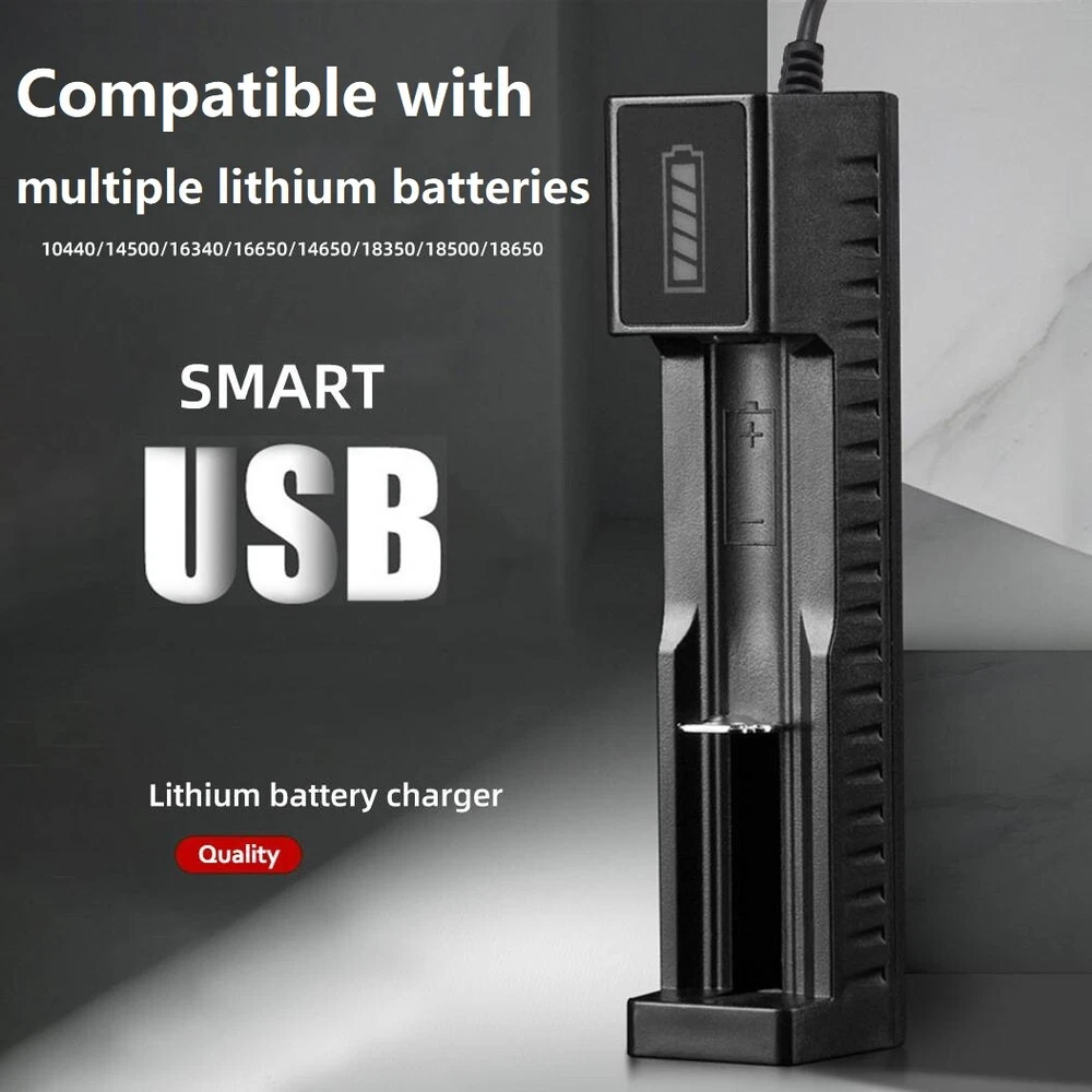 1-Slot USB Battery Charger Smart Adapter for 3.7v Lithium Rechargeable Batteries Features: 1. With adjustable electrode, this single slot portable battery charger can charge many types of batteries. 2. This lithium polymer battery charger contains current and Vmax detection program to prevent your batteries from overcharging. 3. Using a usb port to charge,you can charge your batteries in the office using your computer or use a battery bank to charge while you on metro. 4. When you load the battery reverse or load a short-circuited,the battery chager won't work, keep you from possible danger. 5. Small size and light weight, the 18*65*O single slot battery charger can be put in your bag, pant pocket. 6. Intelligent IC control, output short circuit, anti-reverse protection The LED light is red when charging , it is green when full charged or empty . Specifications: Power Supply mode: USB DC5V Input Voltage: DC 5V 1-2A Output Voltage: DC 4.2V 500mA Product Size: 106*27*23mm/4.17*1.06*0.91" Compatible battery: 10440/14500/16340/16650/14650/18350/18500/18*65*O/26650 etc Package Includes: 6x USB Smart Battery Charger 1 Slot On Jan 6, 2025 at 05:20:55 PST, seller added the following information: