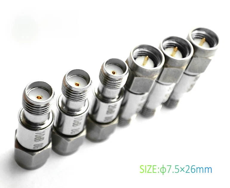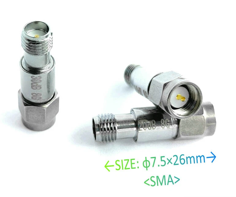 You may also like 1dB-30dB RF Coaxial Attenuator SMA JK Male/Female DC-8GHz 2W 1/3/6/10/15/20/30dB Description: 100% brand new and high quality 1. Power: 2w 2. Frequency Range: DC-8GHz 3. VSWR: ≤1.20 4. Connector: SMA 5. Impedance: 50Ω 6. Attenuation: 1-30dB available, and 1-10dB.±0.5dB,15-30dB±1dB 7. Dimension: 30mmx8mm/ 1.18x0.31in Type: SMA-JK Male to Female RF Coaxial Attenuator 2W 0-6GHz -10DB SMA-JK Male to Female RF Coaxial Attenuator 2W 0-6GHz -20DB SMA-JK Male to Female RF Coaxial Attenuator 2W 0-6GHz -30DB Quantity: 1 Pc Note: Transition: 1cm=10mm=0.39inch No retail package. Please allow 1-3mm error due to manual measurement. pls make sure you do not mind before you bid. Due to the difference between different monitors, the picture may not reflect the actual color of the item. Thank you! Package includes: 1 x Coaxial Attenuator