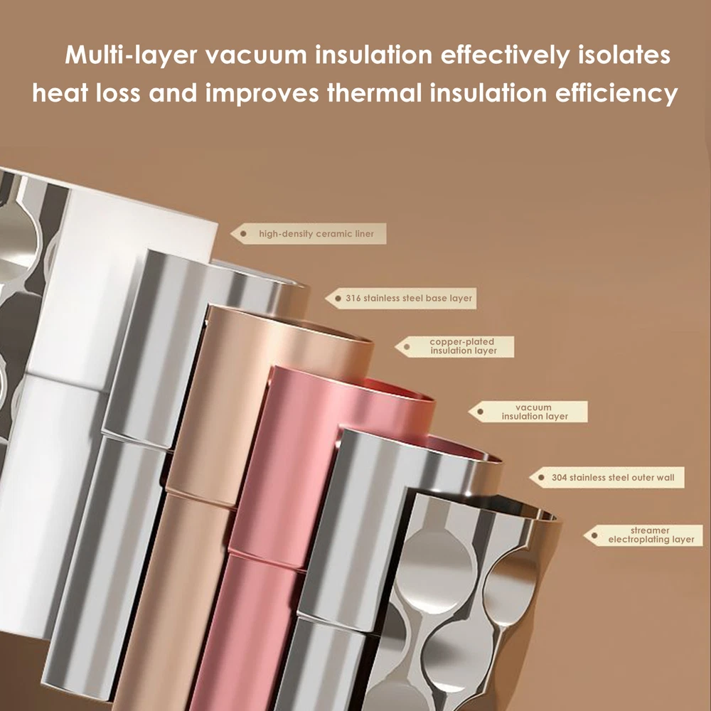 Bullet Points: Temperature Monitoring: The LED display of this stainless steel vacuum mug, powered by a built-in button battery and intelligent chip, accurately shows the temperature of your drink. Enjoy your beverage at your ideal temperature and avoid scalds. 316 Stainless Steel Inner: With a sleek design and a 316 stainless steel inner core, our vacuum mug has a 316 high-density ceramic coating lining that's safe and reliable. Plus, its excellent thermal insulation will keep your drinks hot or cold for longer without any hint of rust or oxidation. Unmatched Thermal Retention: Our Stainless Steel Vacuum Mug features a reinforced PP lid that maximizes air tightness and prevents leakage. The food-grade silicone seal ensures stable and leak-proof storage, while the non-slip silicone base adds stability. Keep your drink hot or cold for hours. With a Handy Handle: Experience long-lasting temperature control with our Stainless Steel Vacuum Mug that boasts a 6-layer insulation structure, keeping your drink hot or cold for more than 6 hours. The handy handle ensures easy portability without burdening your hand. Wide Range of Uses: Whether you're exploring the good outdoors, on a road trip, or chilling at home, this stainless steel vacuum mug keeps drinks hot or cold for hours. Perfect for all occasions, from camping expeditions to party gatherings, it's a reliable companion. Experience excellent temperature retention with our Vacuum Insulated Mug. The 316 stainless steel inner and 6 layers of insulation structure ensure your drink stays hot or cold. With a non-slip stable base, it's perfect for any environment or place. Plus, it's easy to correctly read the temperature. Specification: Material: Shell: 304 stainless steel; Liner: Ceramic; Lid: Food grade PP; Sealing ring: silicone for food contact Volume: 410ml Weight: About 350g Performance: Cold resistance -40 degrees Celsius/heat resistance 100 degrees Celsius Packing List: 1pcs* Insulated Coffee Mug 1pcs* Instructions in Chinese and English Note: Due to different lighting and screen settings, the item color may be slightly different from the picture. Due to different manual measurements, please allow a 1-2cm difference in size.