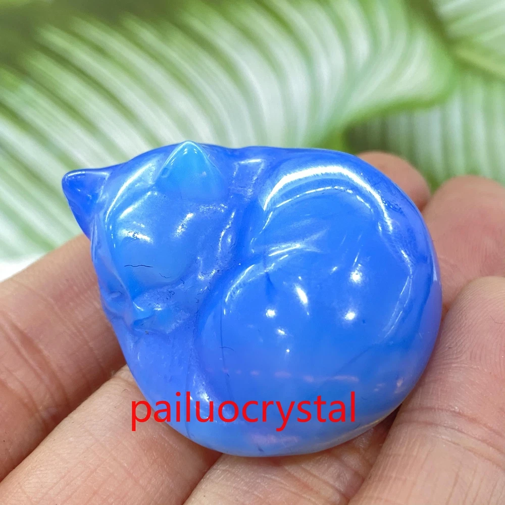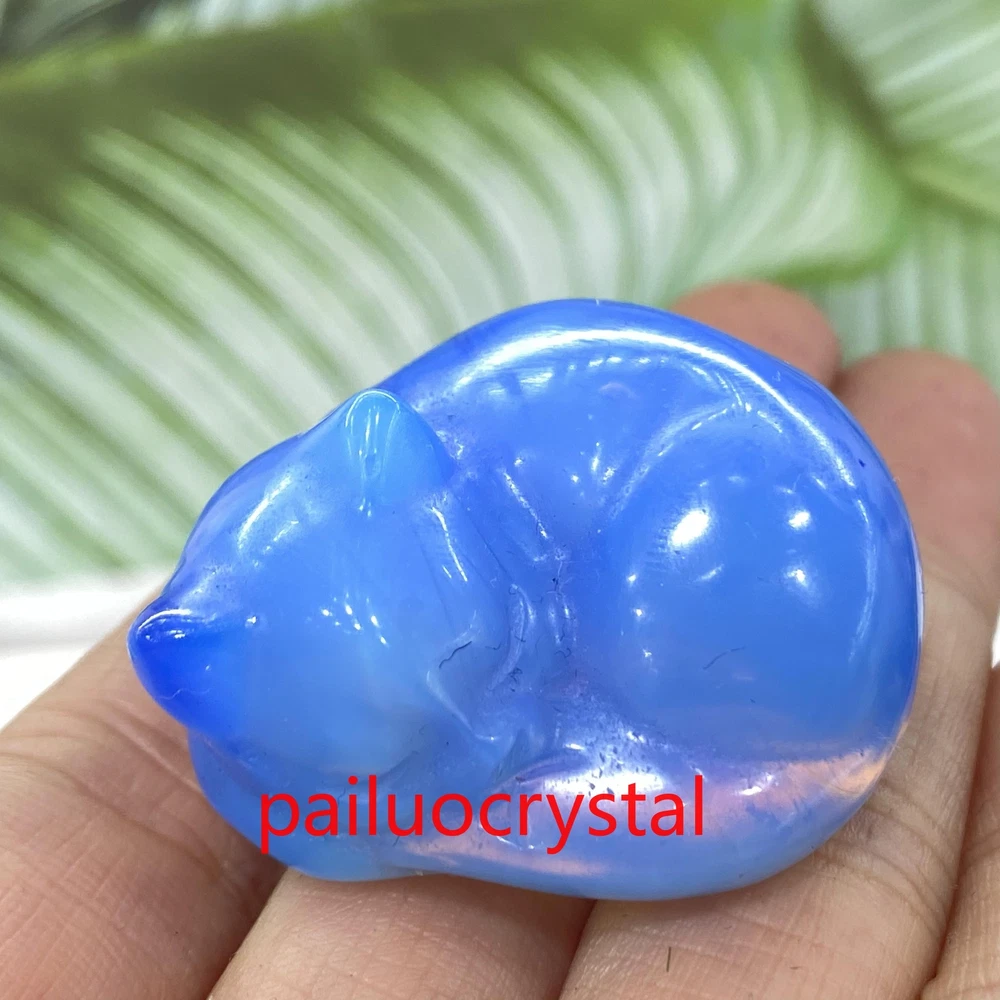 1pc Blue Opalite Cat Skull Quartz Crystal Skull Carved Figurines Healing 1.5"
