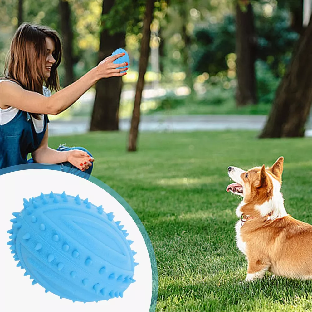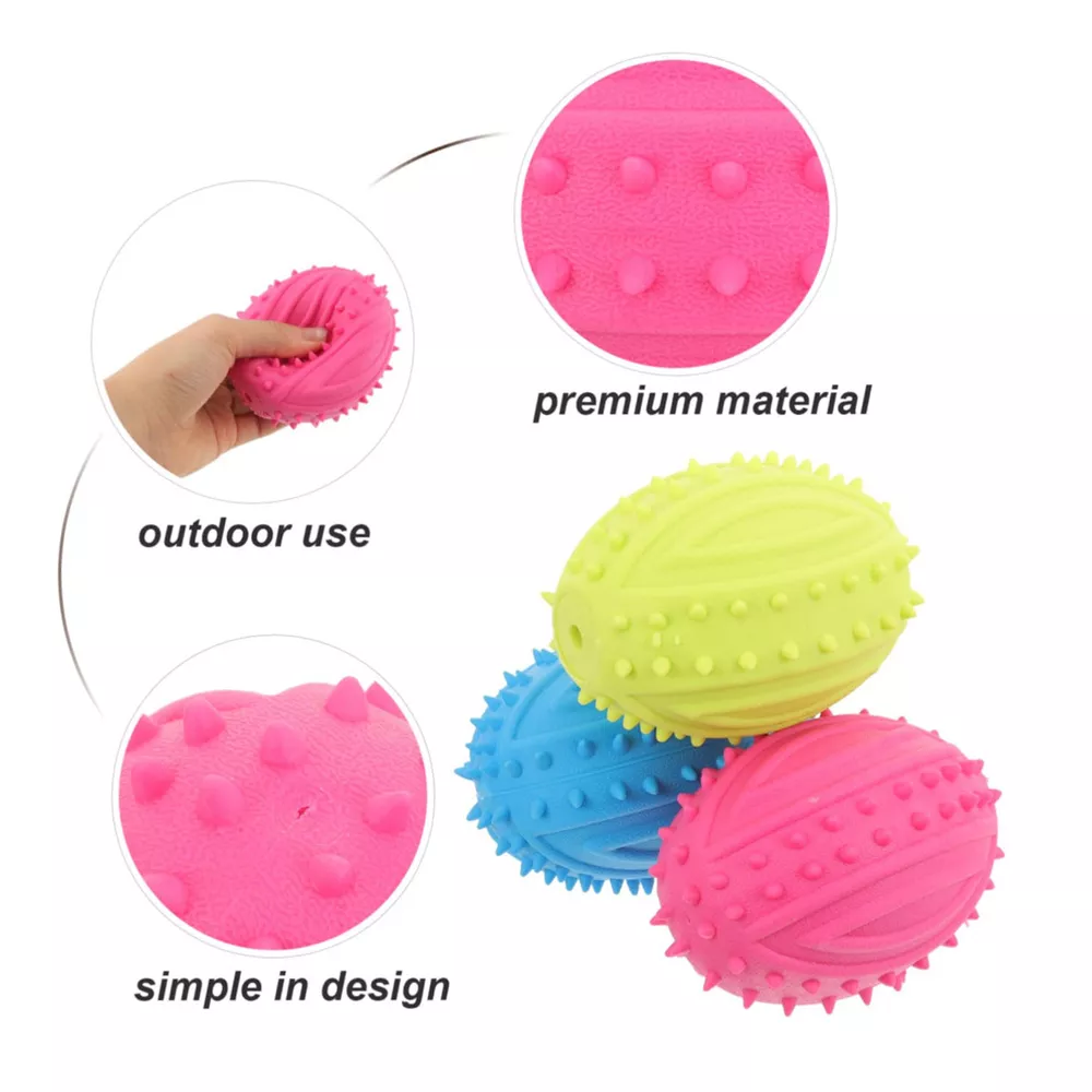 Bullet Points: Stimulate Playtime: Our dog teething ball consists of textured and shape-designed chew toys that start your furry friend's curiosity and thirst for exploration. Stimulate their senses and capture their attention with this specially crafted ball Long-Lasting Chew Joy: Give your dog the present of a sturdy chew toy that stays intact through even the most enthusiastic chewers. Enjoy repeated games of chucking without worry, thanks to rounded corners and seamless seams that prevent injuries. Your pet will enjoy long-lasting companionship with their new favorite toy Handy Sanitization: Regular cleaning extends the life of the toy and provides a healthier playing environment for your dog. With easy support for water washing or simple wiping, keeping your dog's teething ball clean and hygienic is a breeze Teeth Health Advantage: Expertly designed to prevent oral discomfort, promote healthy teeth development, and help remove food debris from teeth exteriors, tailored to meet your dog's teething needs Stress-Reducing: Enjoy peace of mind as your furry friend chews on this dog teething ball, providing ample entertainment and reducing separation stress for an excellent outlet of stress relief Entertain your furry friend with our Dog Teething Ball that captures their attention while remaining intact over time. Tailored to meet your dog's teething needs, it's easy to maintain and provides abundant entertainment. Specification: Product Type: Pet Chew Toys Product weight: 78g Product material: TPR Product size: about 9x6x9cm/3.54x2.36x3.54 inches Pack List: Pet Chew Toys*1