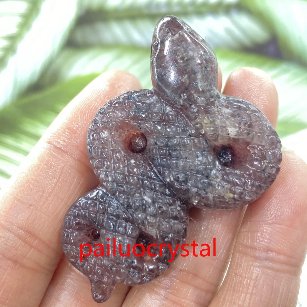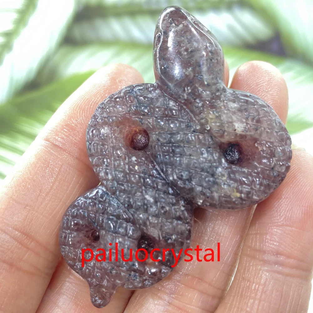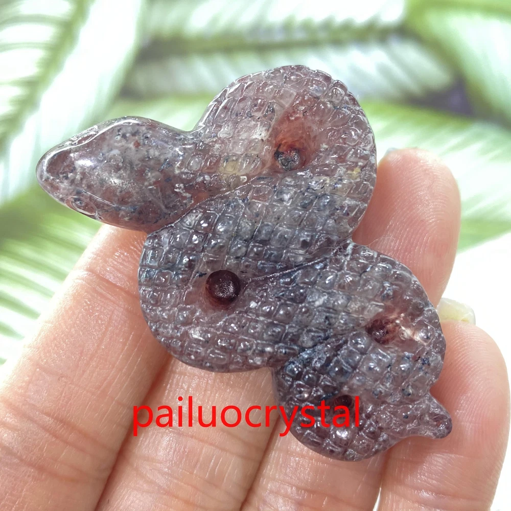 1pc Natural Strawberry Quartz Snake Quartz Crystal Skull Carved Figurines Gem 2"