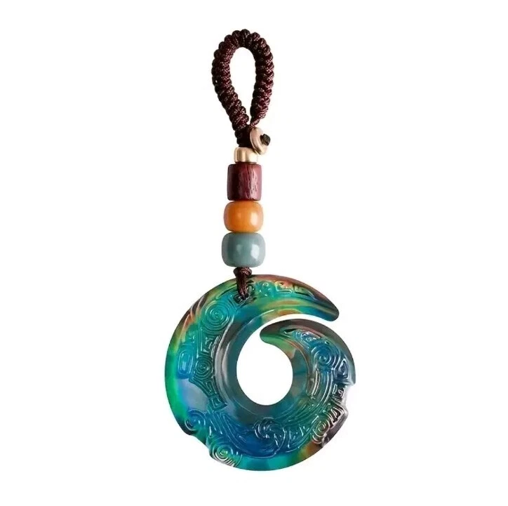 Add a touch of bling to your keys with this colorful dragon keychain pendant. The amulet is carved from resin and features a tasseled, beaded and medallion accent. It is detachable and multifunctional, making it a perfect addition to any woman's accessory collection. The keychain is designed for women and comes in a medium size. This keychain is a perfect gift for any woman who loves unique and eye-catching accessories. It is made in the United States and is not vintage. The colorblock pattern and multicolor design make it a perfect addition to any outfit. Get your hands on this stunning dragon keychain pendant today!