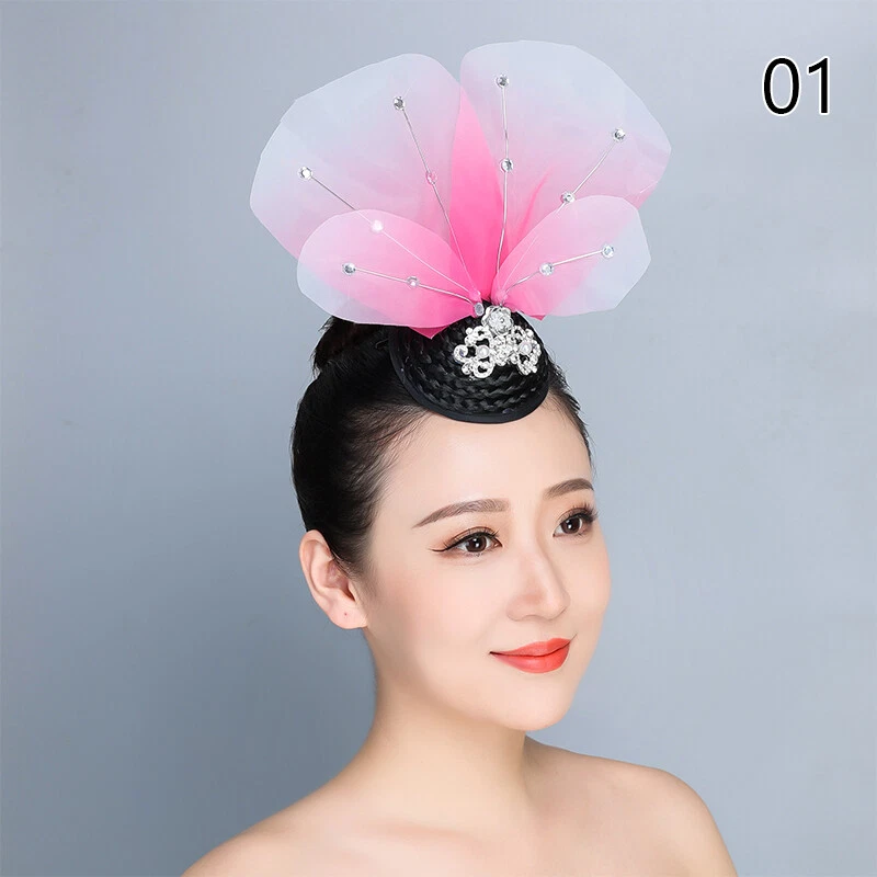 1pc Yangko Folk Dance Tiara Dance Classical Dance Head Flower+Hair Bun Headdress Material: Acrylic & Alloy Package includes: 1 Pcs Hair Band Note: Due to the light and screen setting difference, the item's color may be slightly different from the pictures. Please allow slight dimension difference due to different manual measurement.