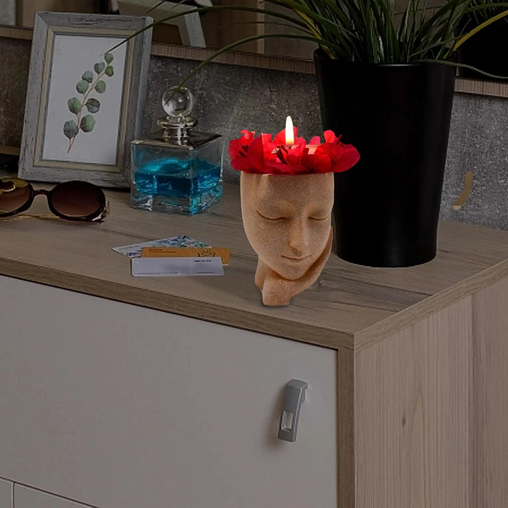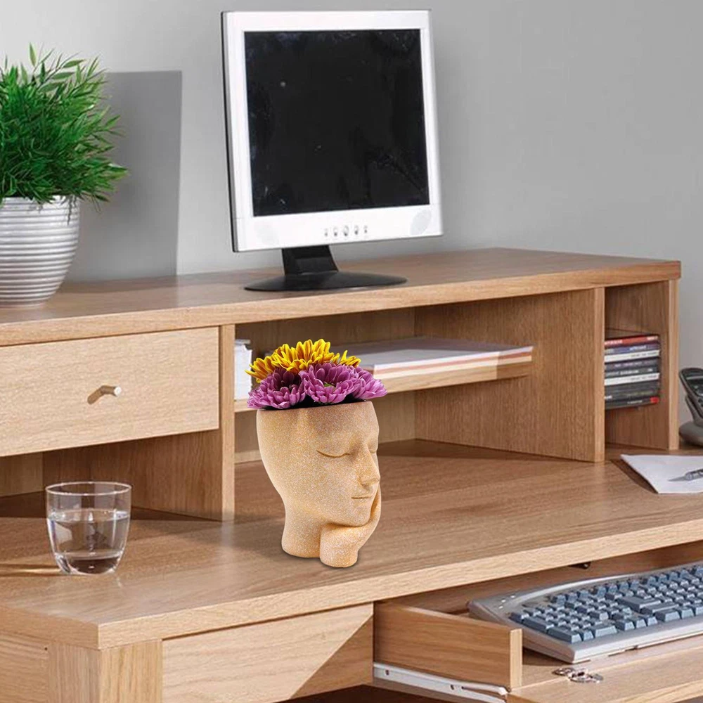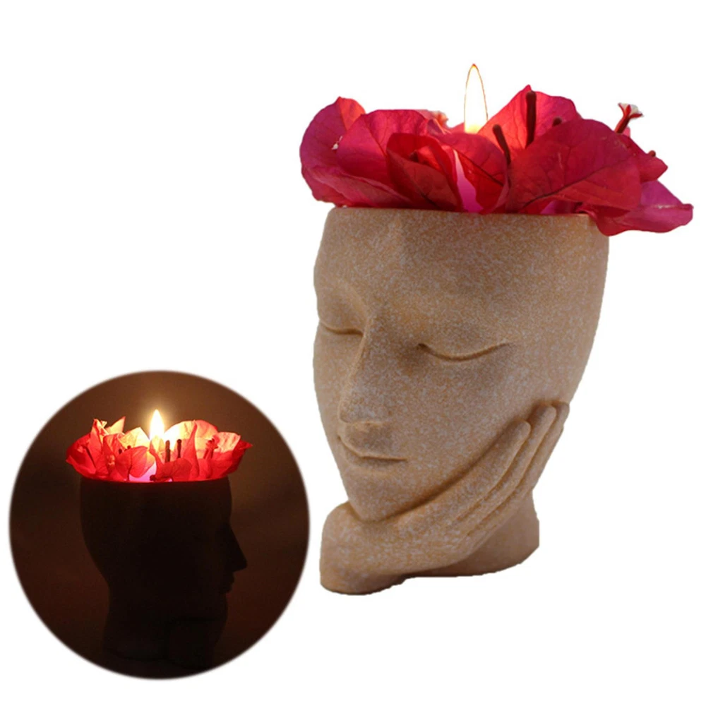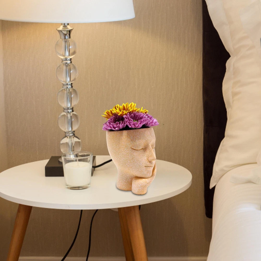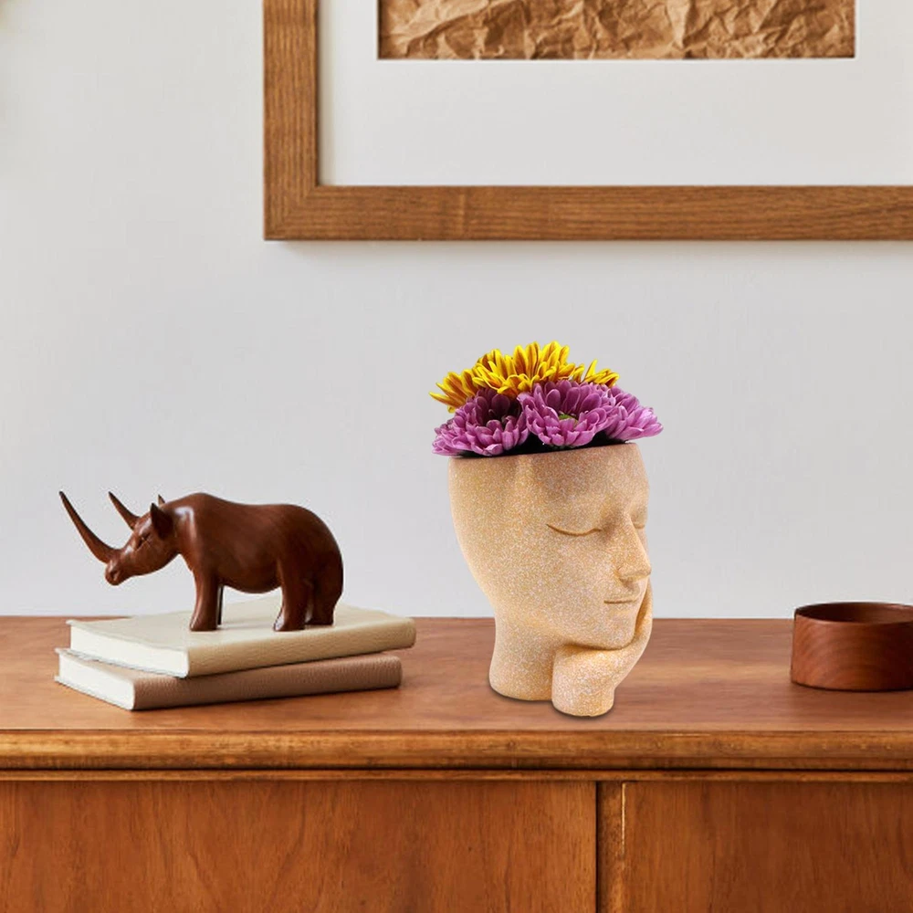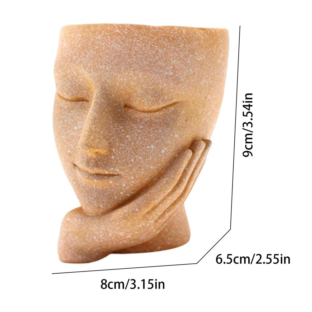 1x Girls Face Head Figurine Flower Pot Succulent Plant Resin Pots Garden Planter