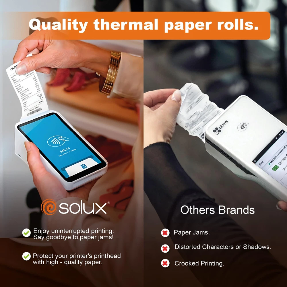 ๐จ๏ธ 2 1/4 x 50 THERMAL PAPER ROLL is compatible with square card reader, square terminal, Clover Flex, Dejavoo Z8 Z9 Z11, Verifone Vx520, Ingenico ICT220, and FD400 for seamless transactions ๐ This high-quality RECEIPT PAPER is perfect for credit card machines; thermal paper 2 1/4 x 50 ensures crisp prints for efficient processing in retail, Clover mini receipt paper, and Clover printer paper applications ๐ Reliable CREDIT CARD MACHINE PAPER ROLLS fit perfectly in Square Register, Square Terminal Printer, and thermal receipt paper 2 1/4, ensuring smooth operations and professional receipts every time ๐ผ Durable THERMAL PAPER designed for high-volume environments; ideal for credit card payment devices like Ingenico move 5000, Verifone vx520 thermal paper, and all Clover receipt paper applications ๐ฆ Optimize your workflow with RECEIPT PAPER ROLLS; compatible with credit card terminal, square terminal receipt paper, and thermal paper rolls 2.25 x 50 ft for consistent quality, ensuring all your credit card machine paper needs are met โ ๏ธ WARNING: This is CREDIT CARD MACHINE PAPER, not suitable for large receipt printers. Ensure compatibility before purchase to avoid inconvenience