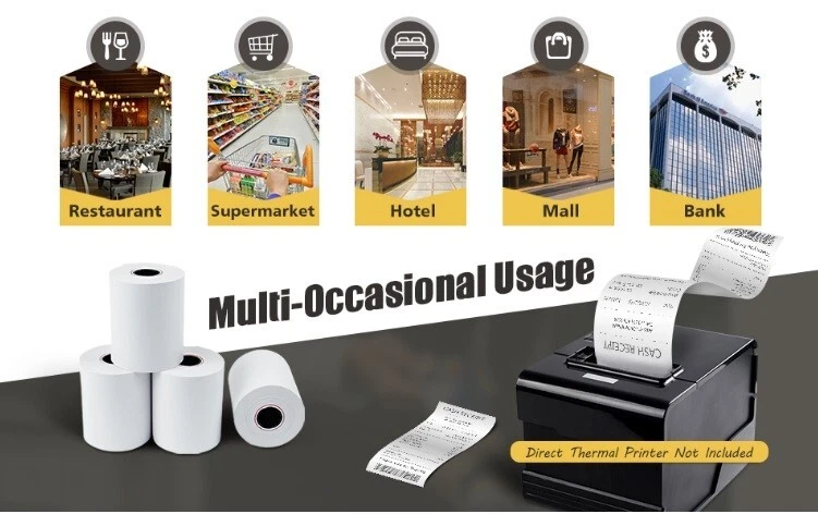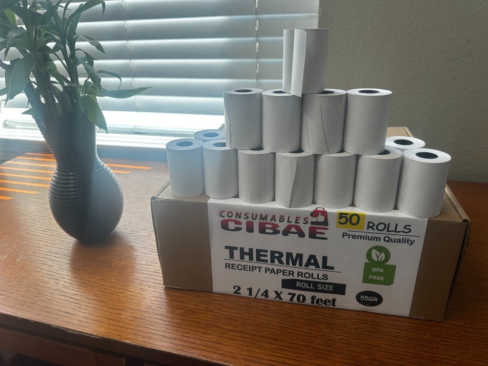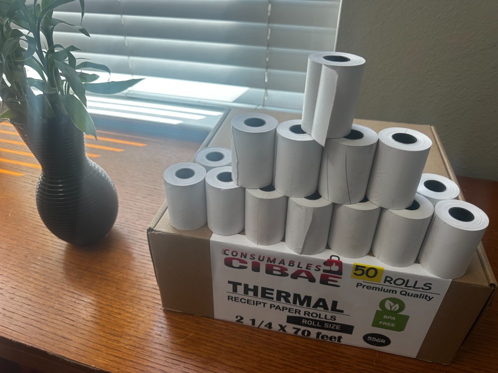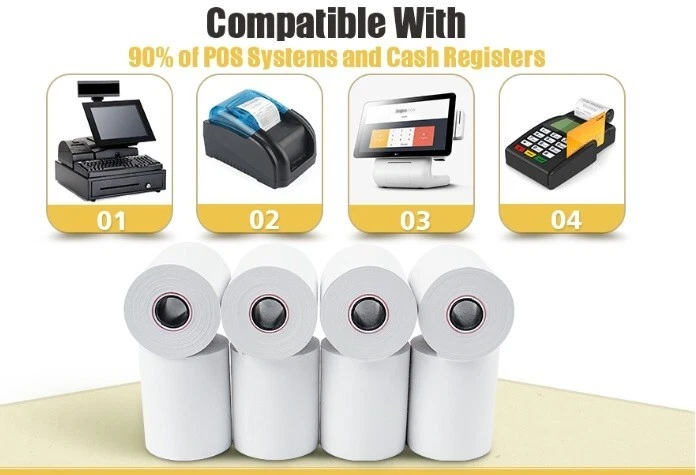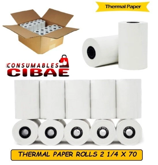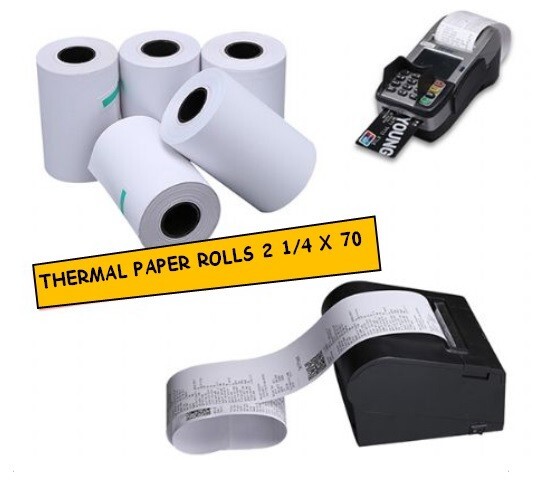 2 1/4" x 70' thermal paper rolls are quality manufactured for long-lasting readability and are compatible with a wide range of printing devices and credit card terminals. Each roll has a vibrant white background for easy reading of the text and is tightly wound and precisely cut for smooth feeding that prevents jamming. The End of Roll Warning Indicator lets you know when it's time to change your printer's roll. Printer rolls are sold in boxes of 200und, 100und, 50und, are BPA-free, and meet OEM printhead requirements. Product Specifications 2.25" x 70' thermal paper rolls 2.25" (57 mm) wide 1 1/4" (40 mm) diameter Core size = 1/2" Write to us if you have any questions about printer compatibility!